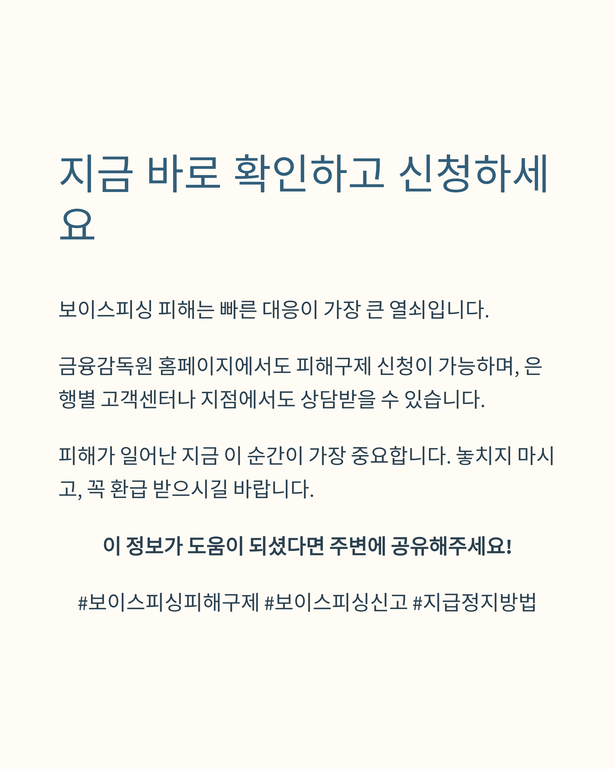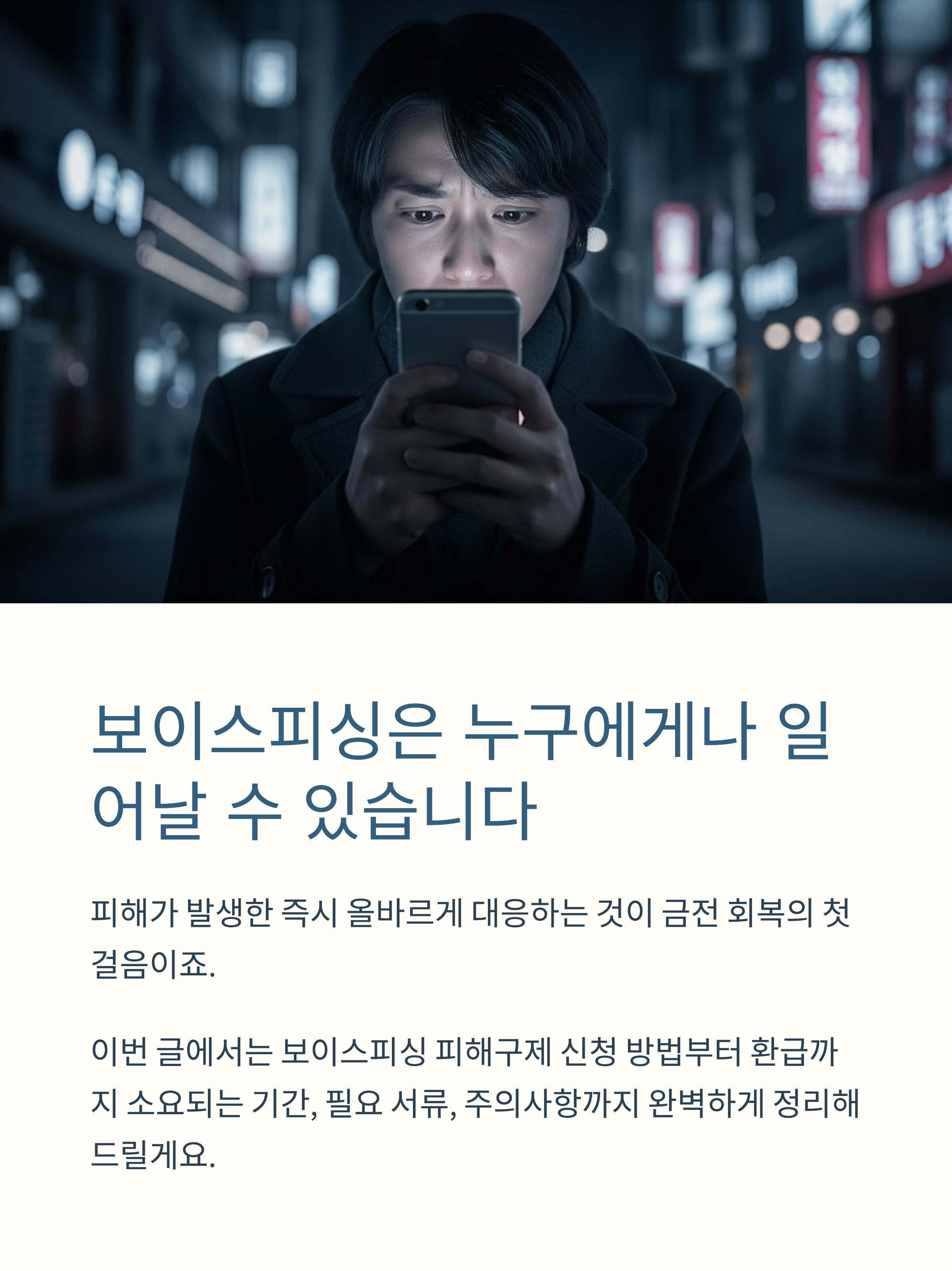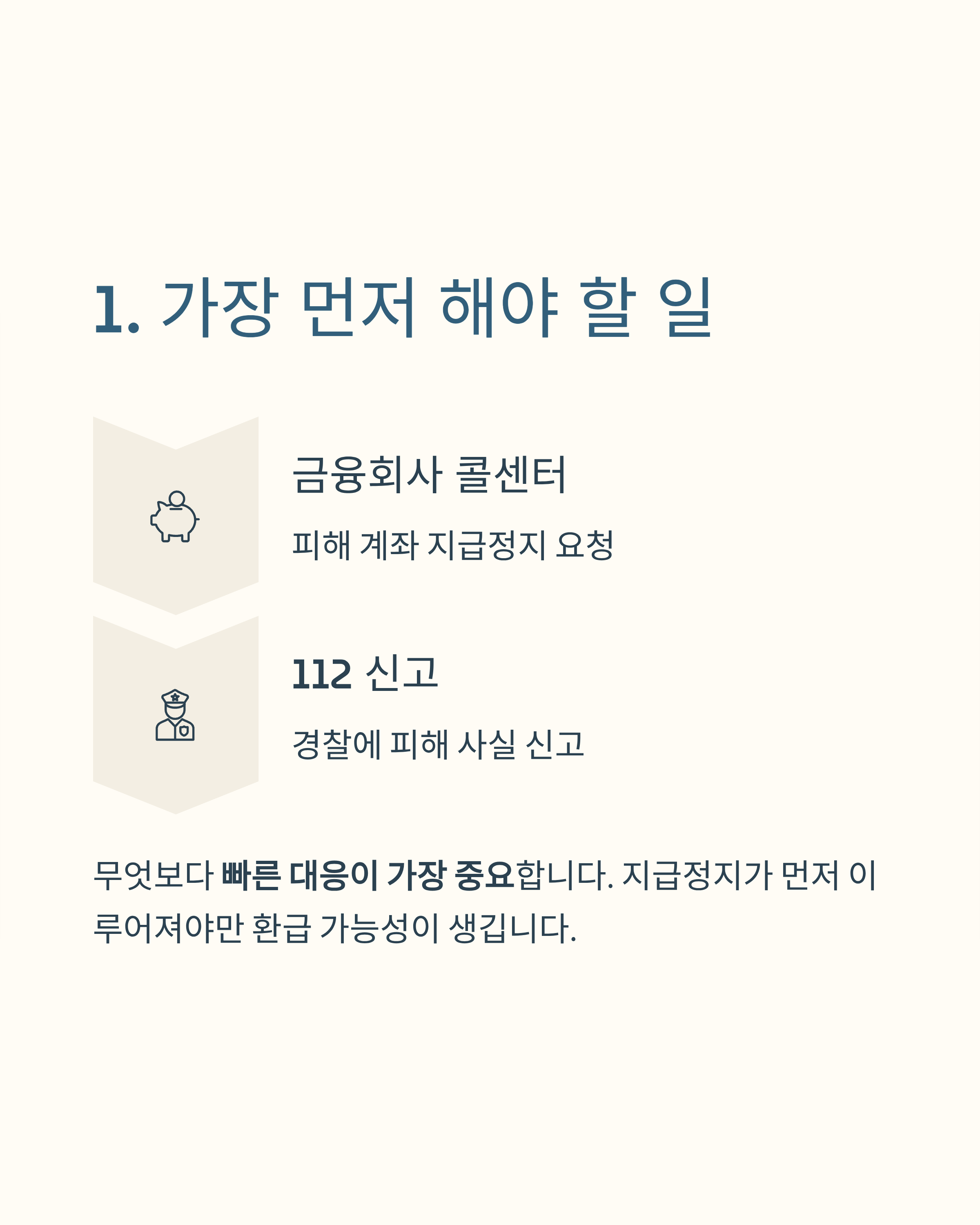 보이스피싱은 누구에게나 일어날 수 있는 일입니다. 피해가 발생한 즉시 올바르게 대응하는 것이 금전 회복의 첫걸음이죠.