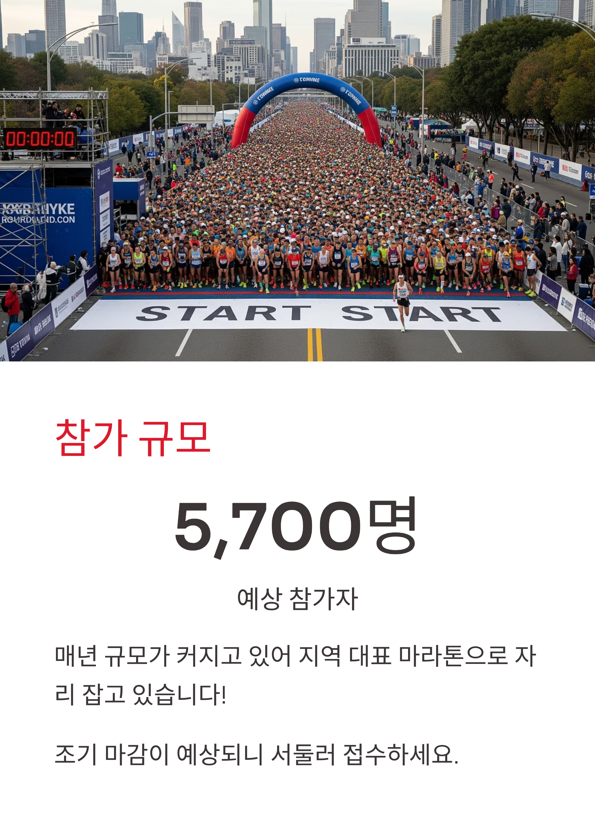 2025년 대회는 5,700여 명이 조기 마감될 정도로 큰 관심을 모으고 있습니다. 매년 규모가 커지고 있어 지역 대표 마라톤으로 자리 잡고 있습니다.