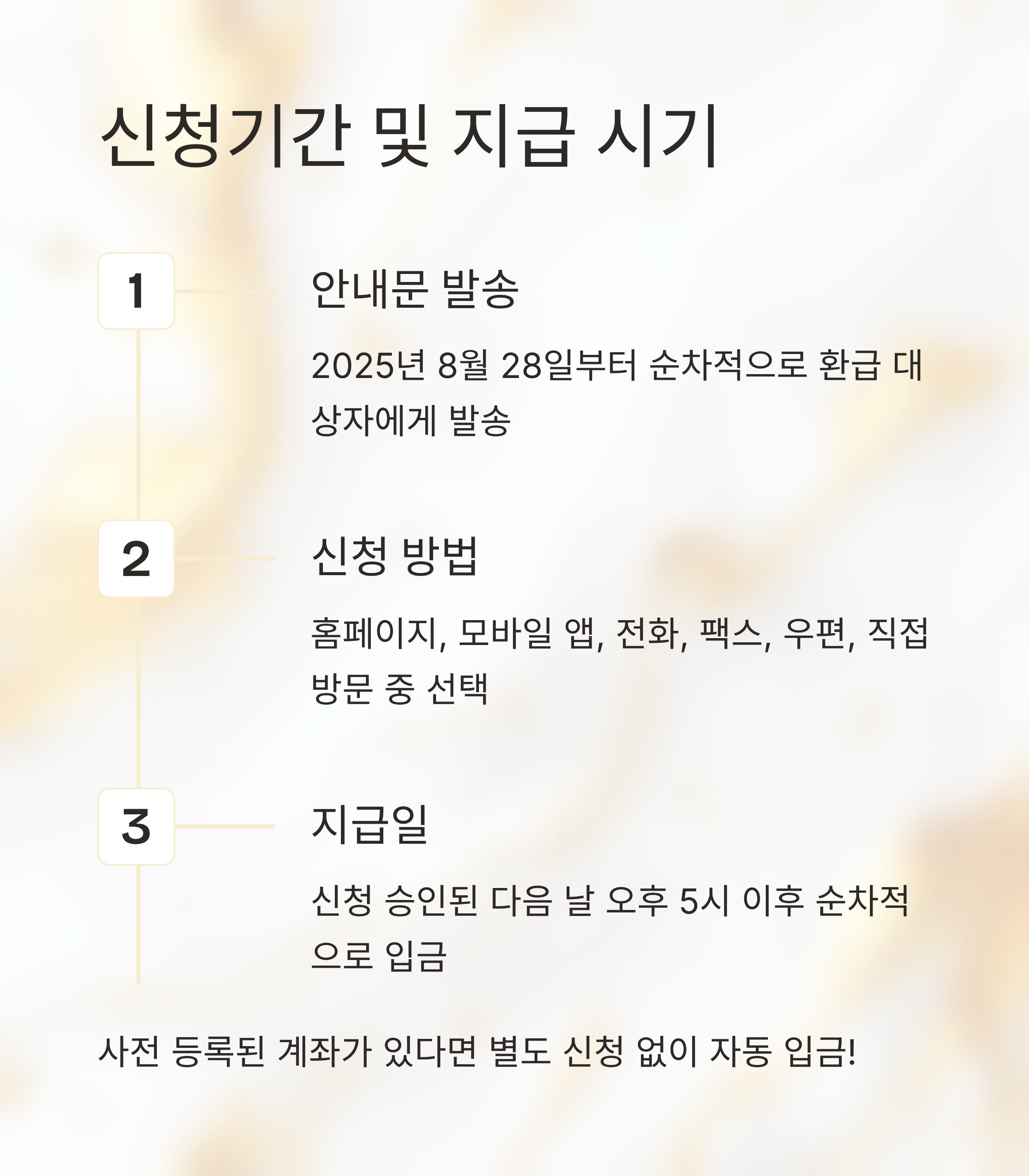 만약 사전 등록된 지급 계좌가 있다면 별도 신청 없이 자동 입금이 진행됩니다.