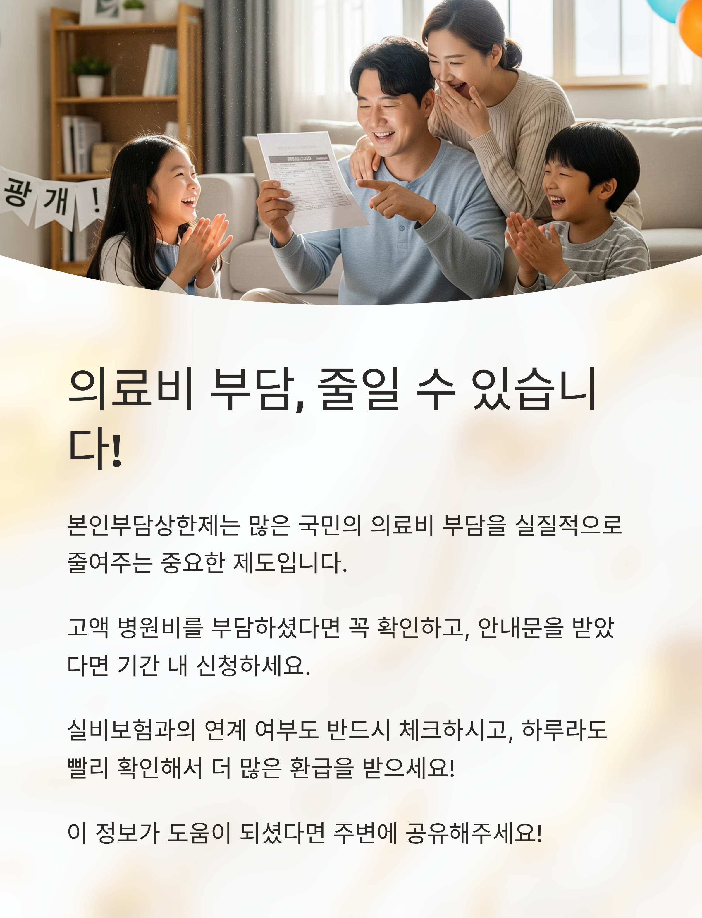 병원비 부담을 줄이는 실질적인 제도이며, 자동 환급이 아닌 '직접 신청'이 필요한 경우도 많기 때문에 안내문을 꼼꼼히 확인하셔야 해요.