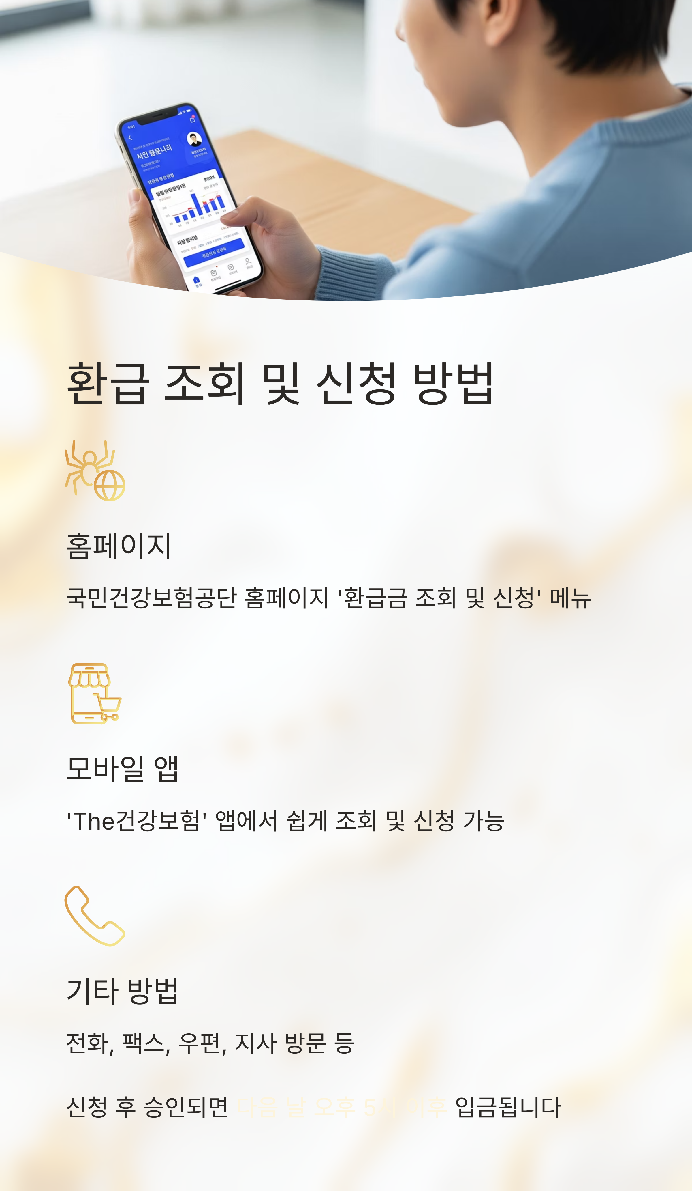 모바일 앱 ‘The건강보험’에서도 쉽게 조회 및 신청이 가능하며,