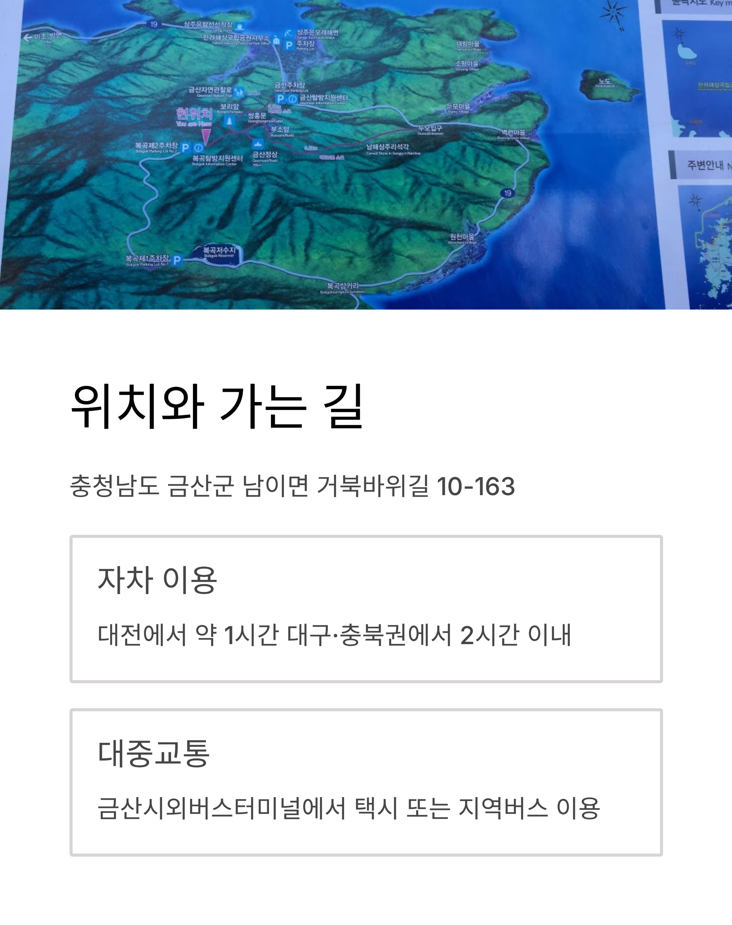 주소는 충청남도 금산군 남이면 거북바위길 10-163.