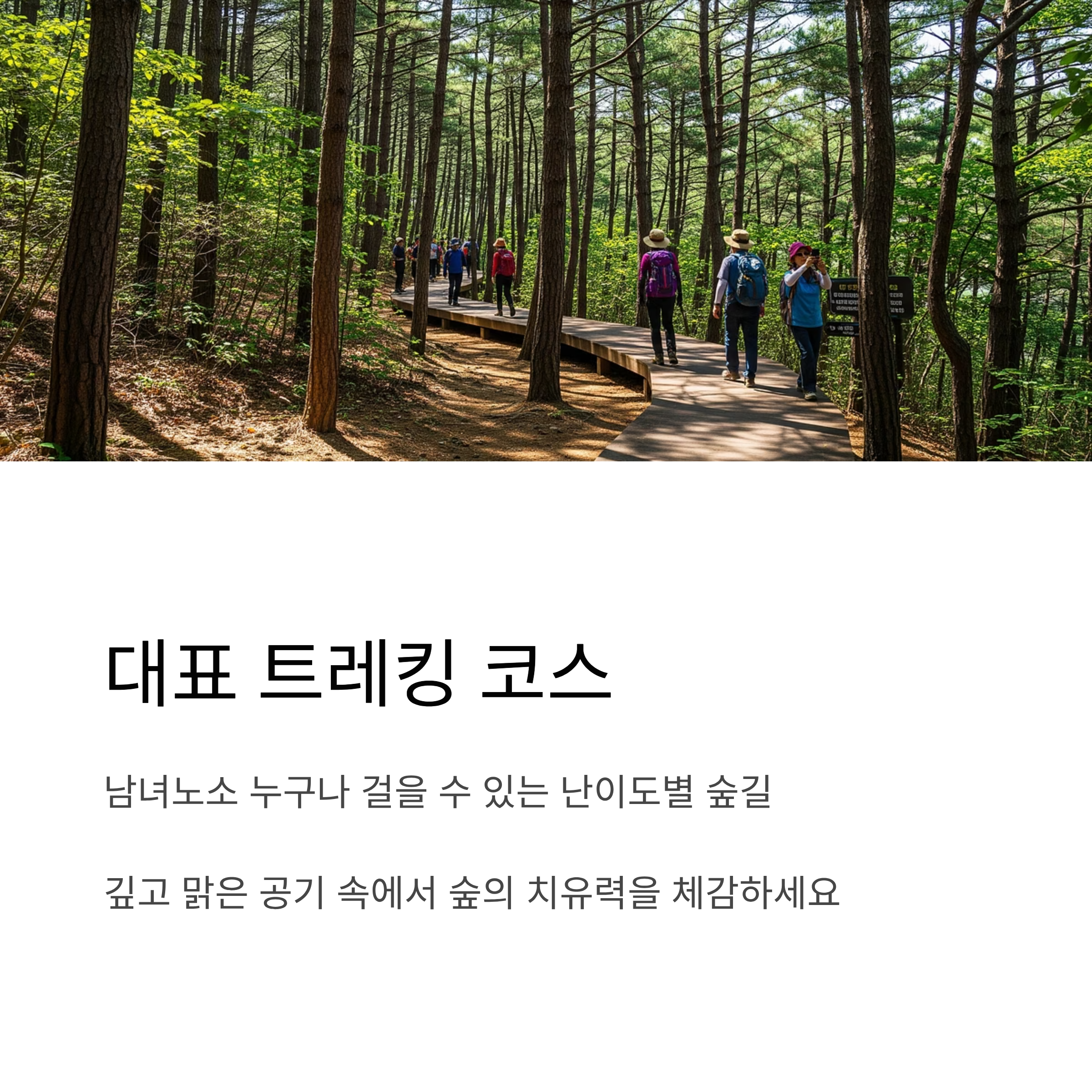 둘째, 하늘다리 트레킹 코스는 산림문화타운 일대를 중심으로 구성되어 있으며, 편백나무 숲과 쉼터, 뷰포인트가 잘 조성돼 있어 부담 없는 산책로로 인기가 높습니다.