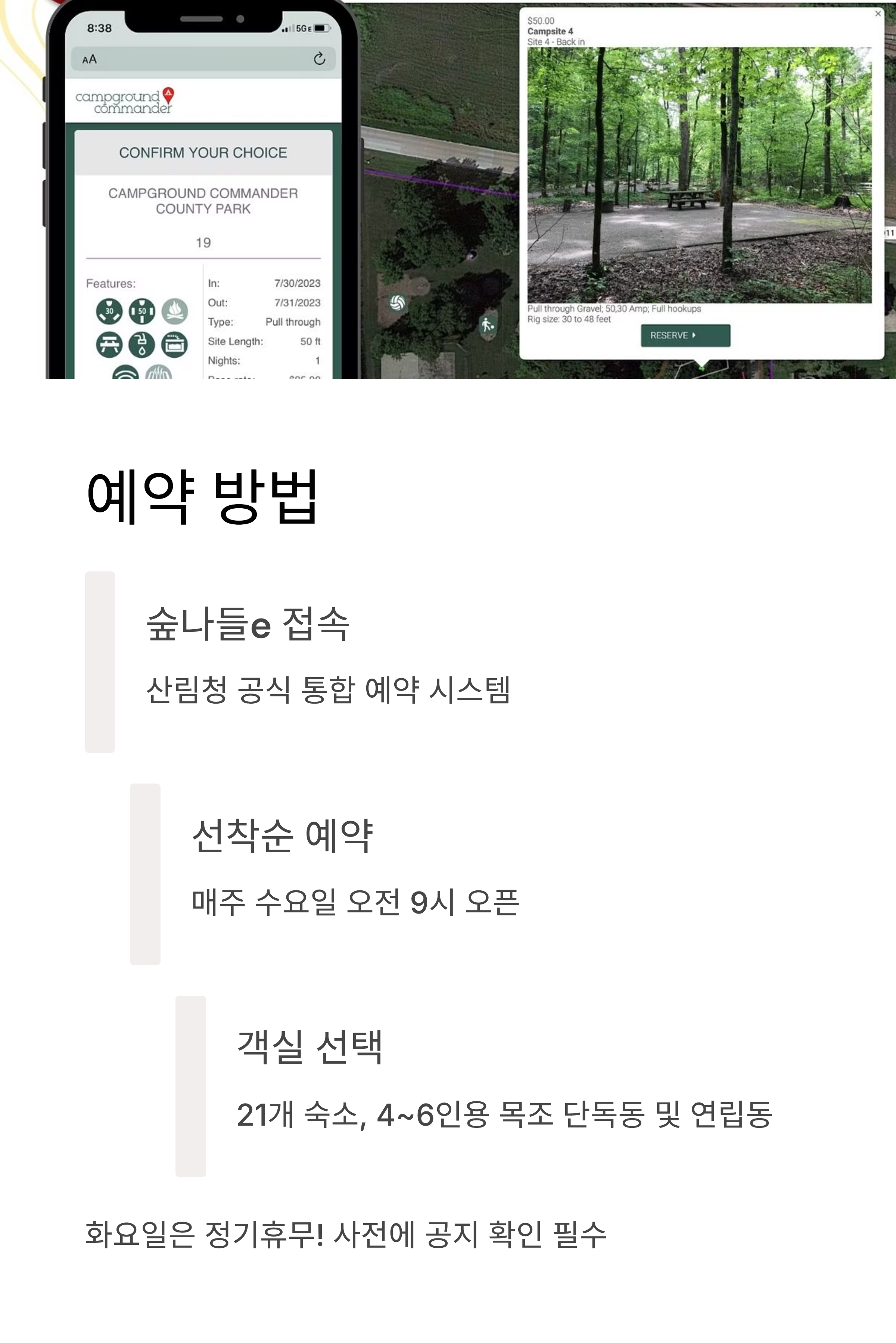 예약은 평일 또는 비성수기 시즌(봄·가을)이 경쟁률이 낮고 숲도 더욱 쾌적하니 이 시기를 노리는 것이 팁입니다.