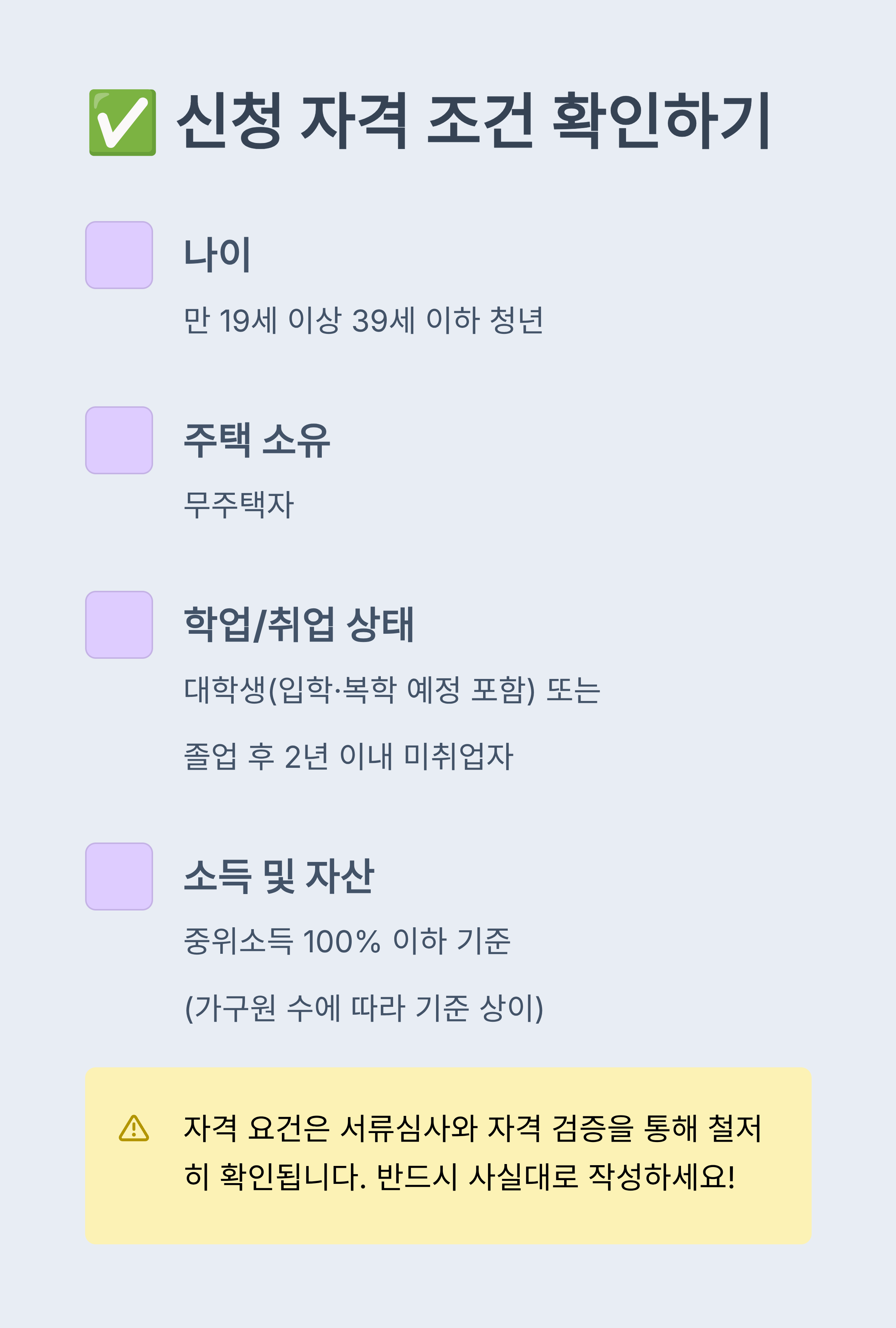 신청 자격 조건✅ 모든 사람이 신청할 수 있는 것은 아닙니다.