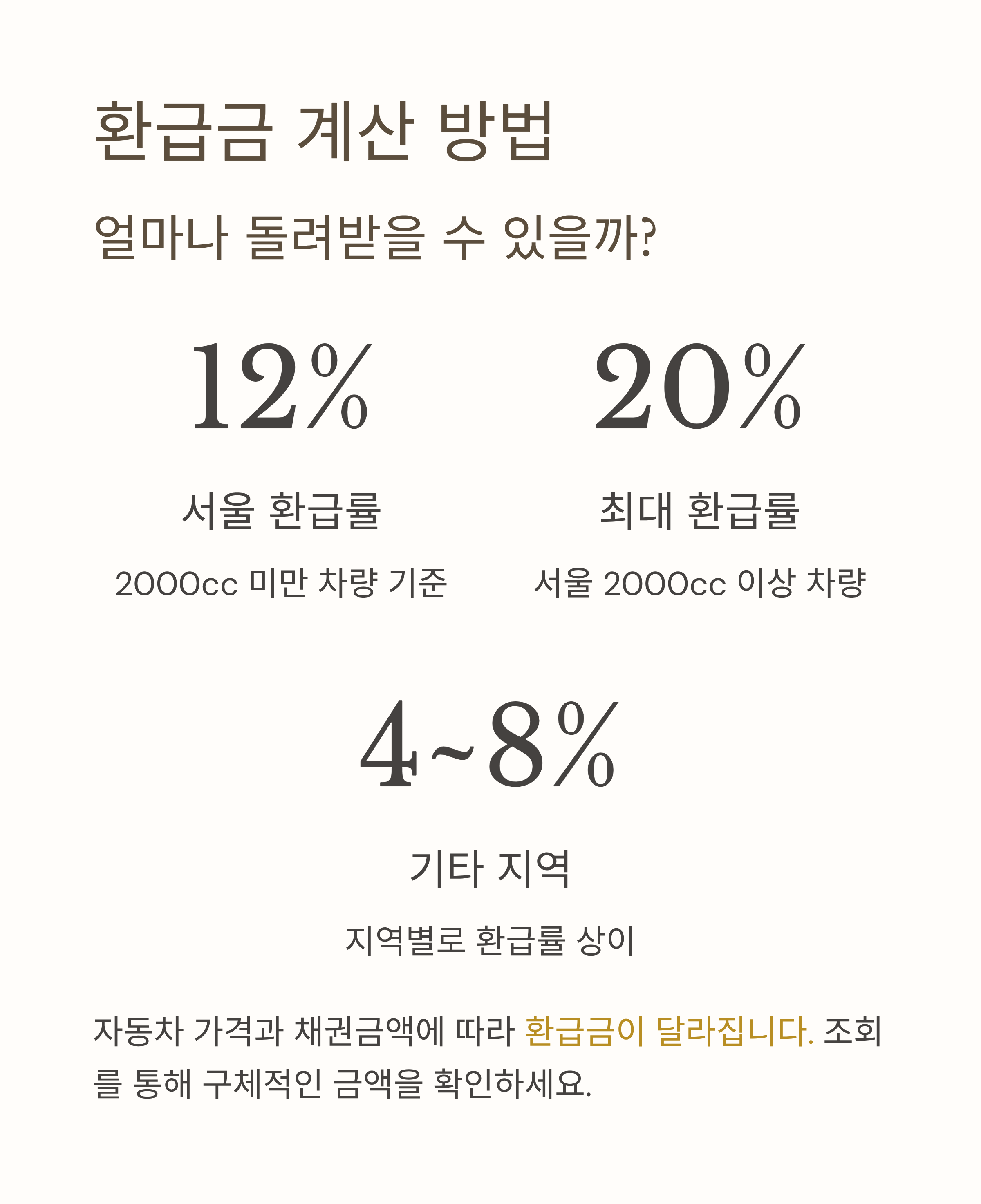2000cc 이상 차량의 경우 서울 기준으로 최대 20%까지 환급이 가능합니다.