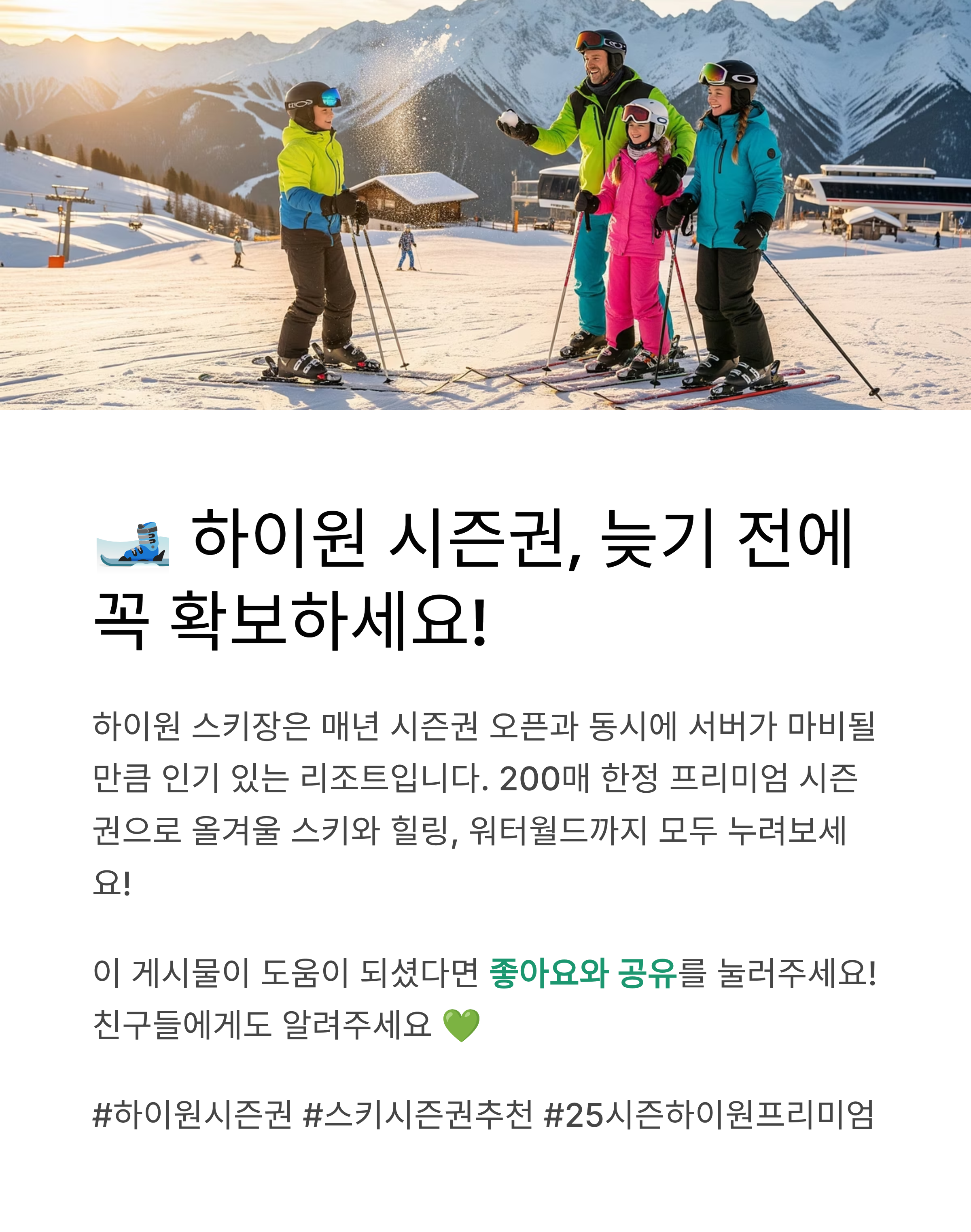 🎿 결론: 하이원 시즌권, 늦기 전에 꼭 확보하세요