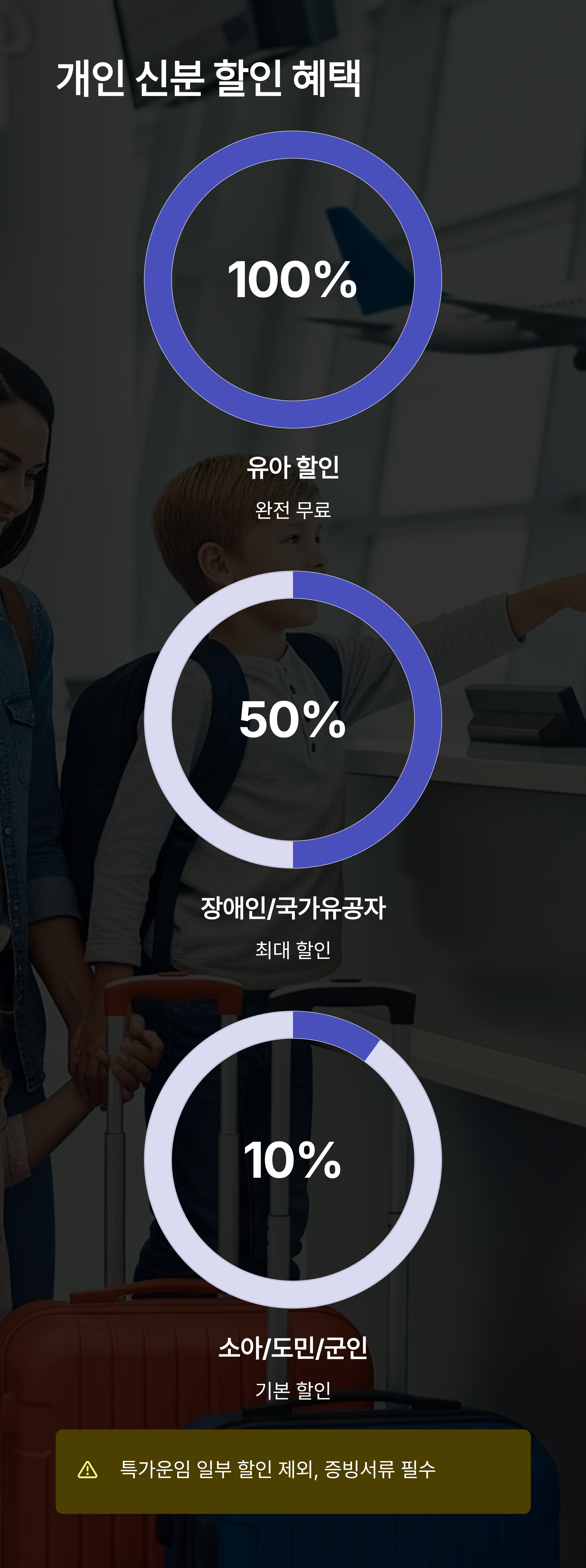 단, 특가운임에는 일부 할인이 적용되지 않으며, 반드시 증빙 서류를 소지해야 합니다.