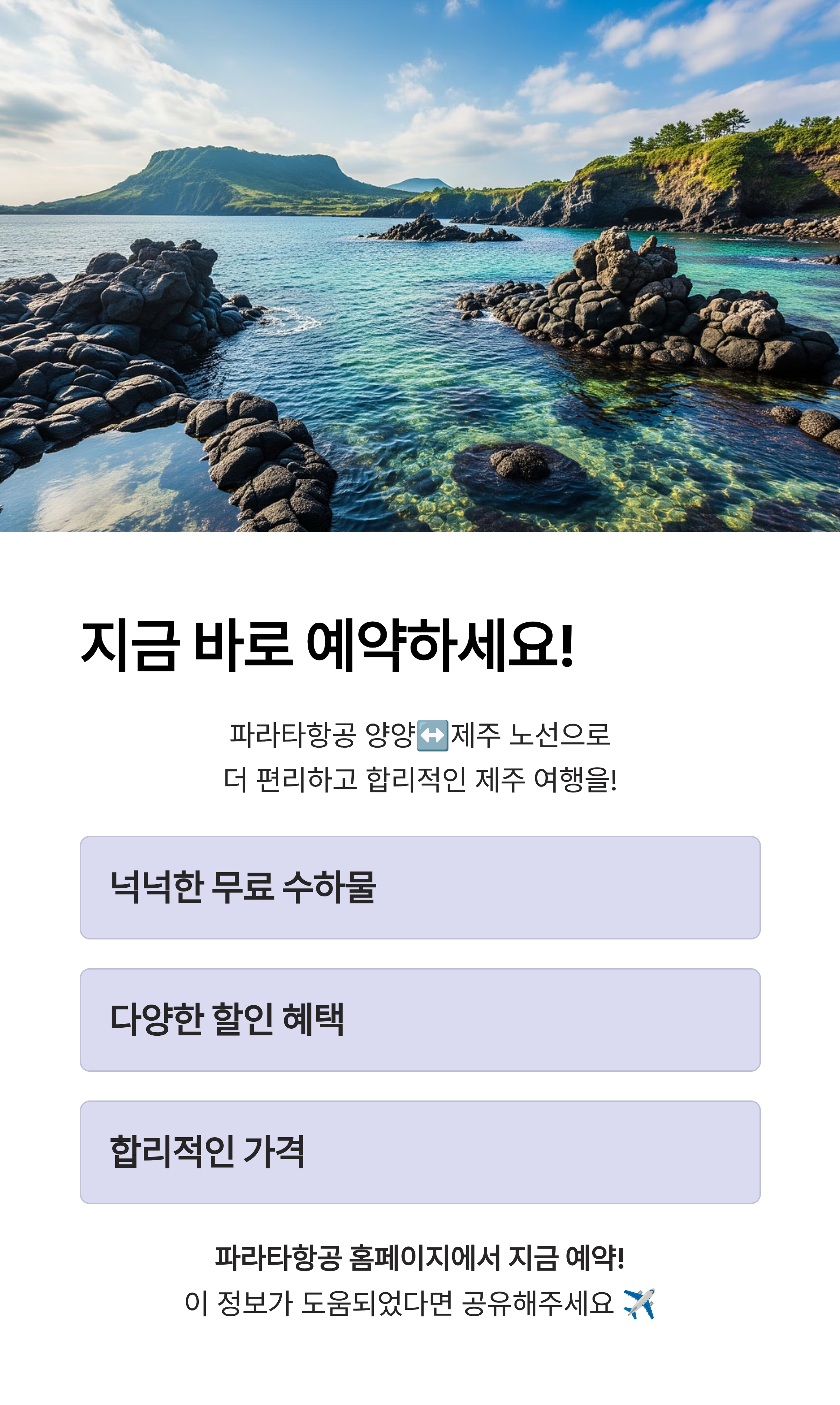 2025년 가을 제주 여행을 계획하신다면, 지금 바로 파라타항공 홈페이지 또는 모바일 앱을 통해 예약을 서두르시는 것을 추천드립니다. ✈️