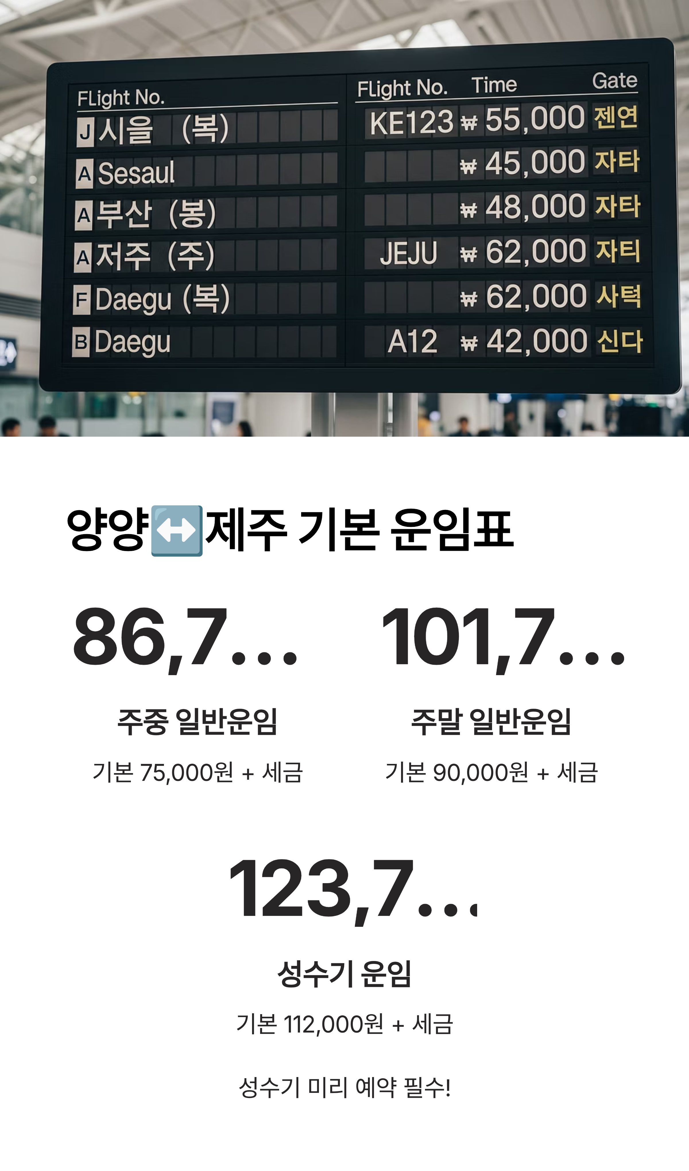 2. 양양↔제주 노선 기본 운임 총정리