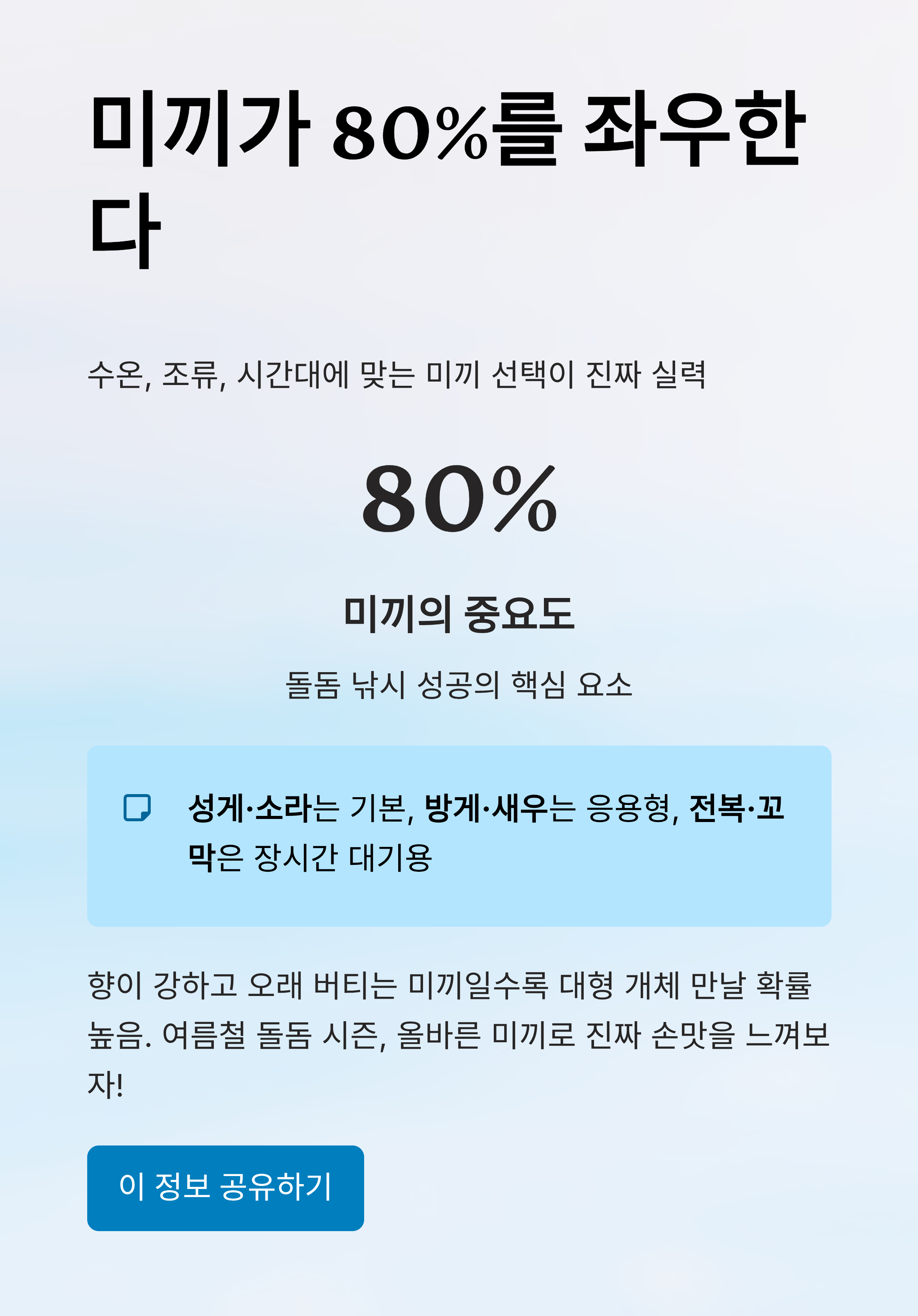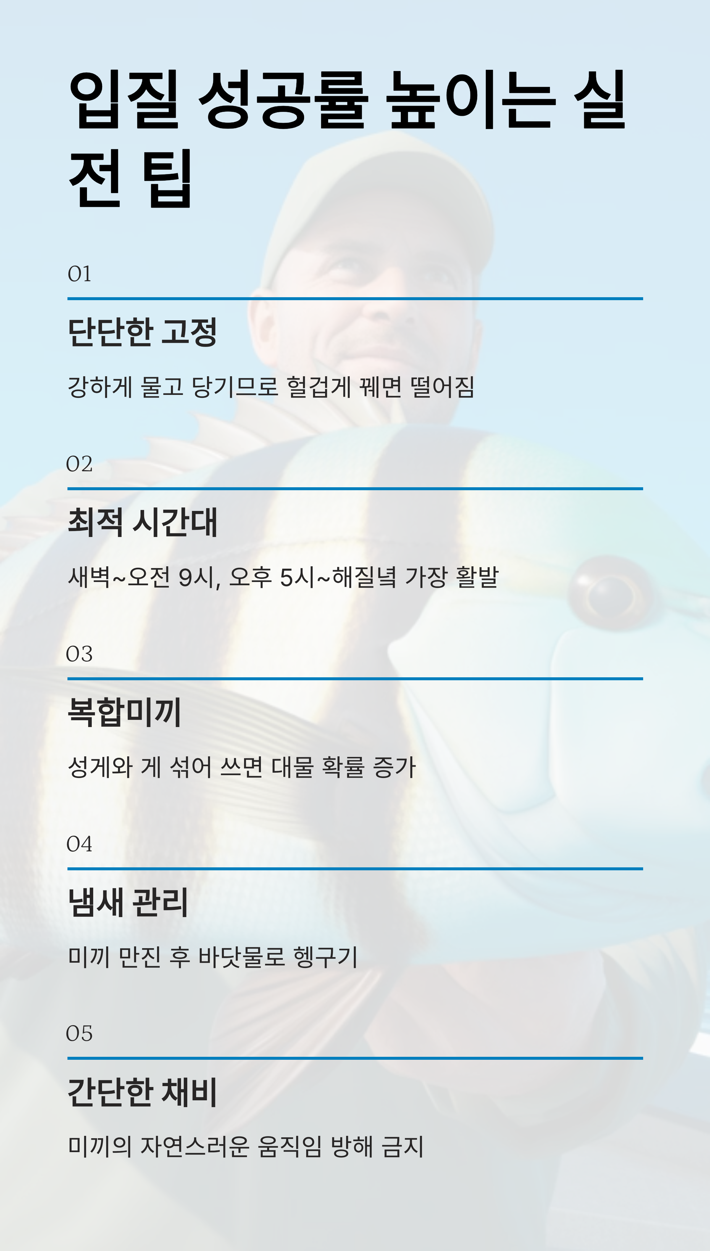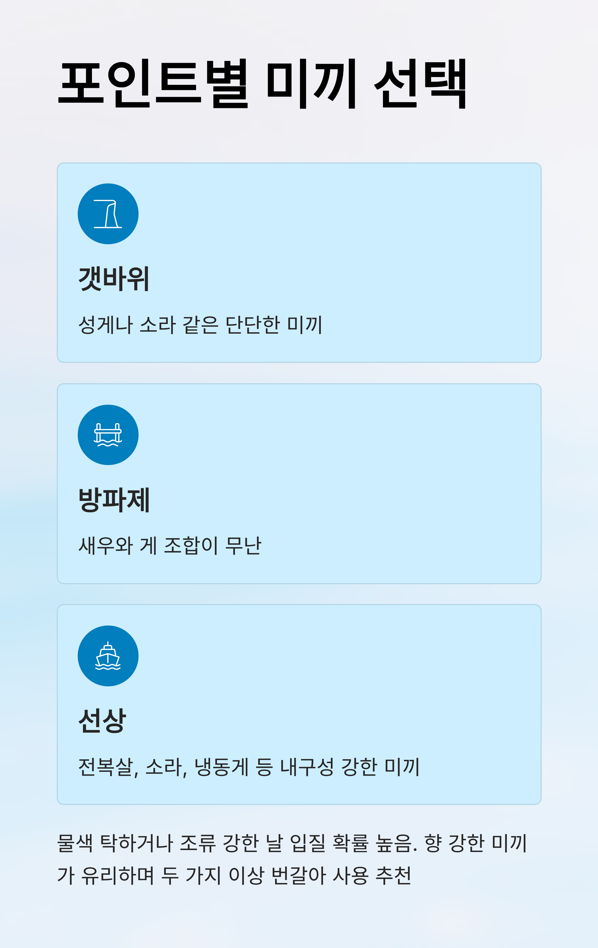 입질이 없다고 포인트만 탓할 게 아니라, 그날의 수온, 조류, 시간대에 맞는 미끼를 찾는 것이 진짜 실력이다.