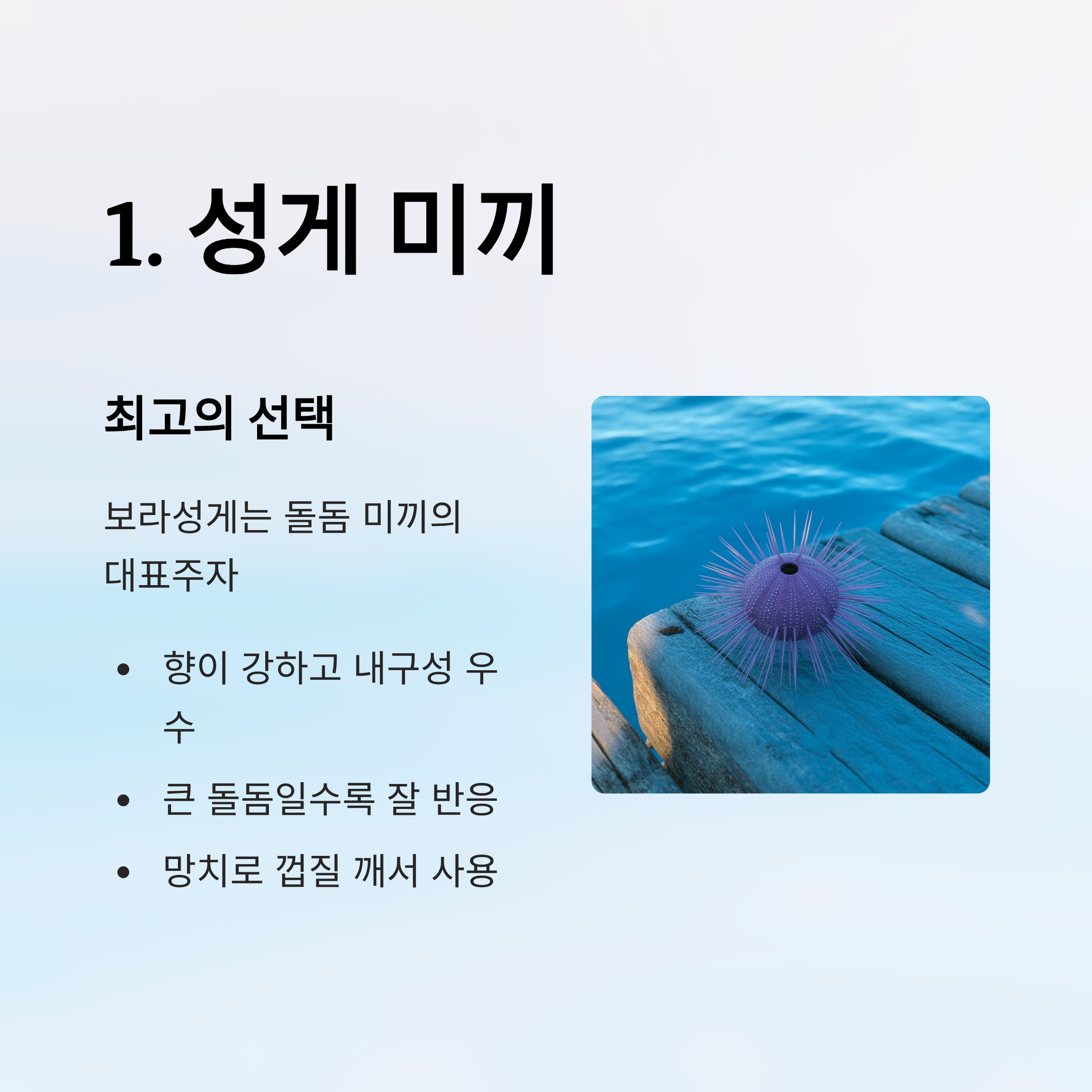 특히 여름철부터 초가을 사이 돌돔 시즌에는 같은 자리에서도 미끼 선택에 따라 조과가 극명하게 갈린다.