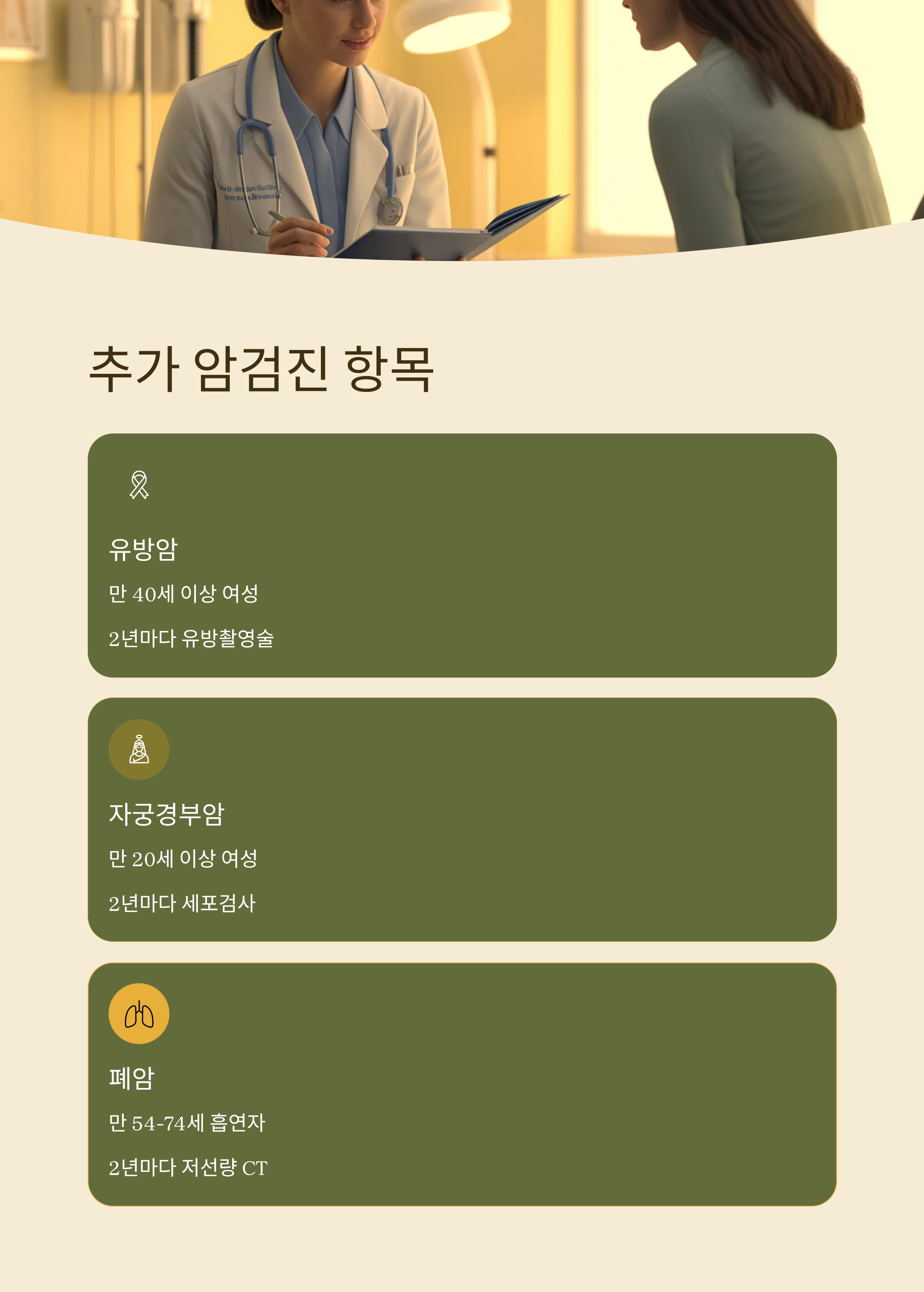 이처럼 연령과 위험 요인에 따라 정기적으로 검진을 받을 수 있습니다.