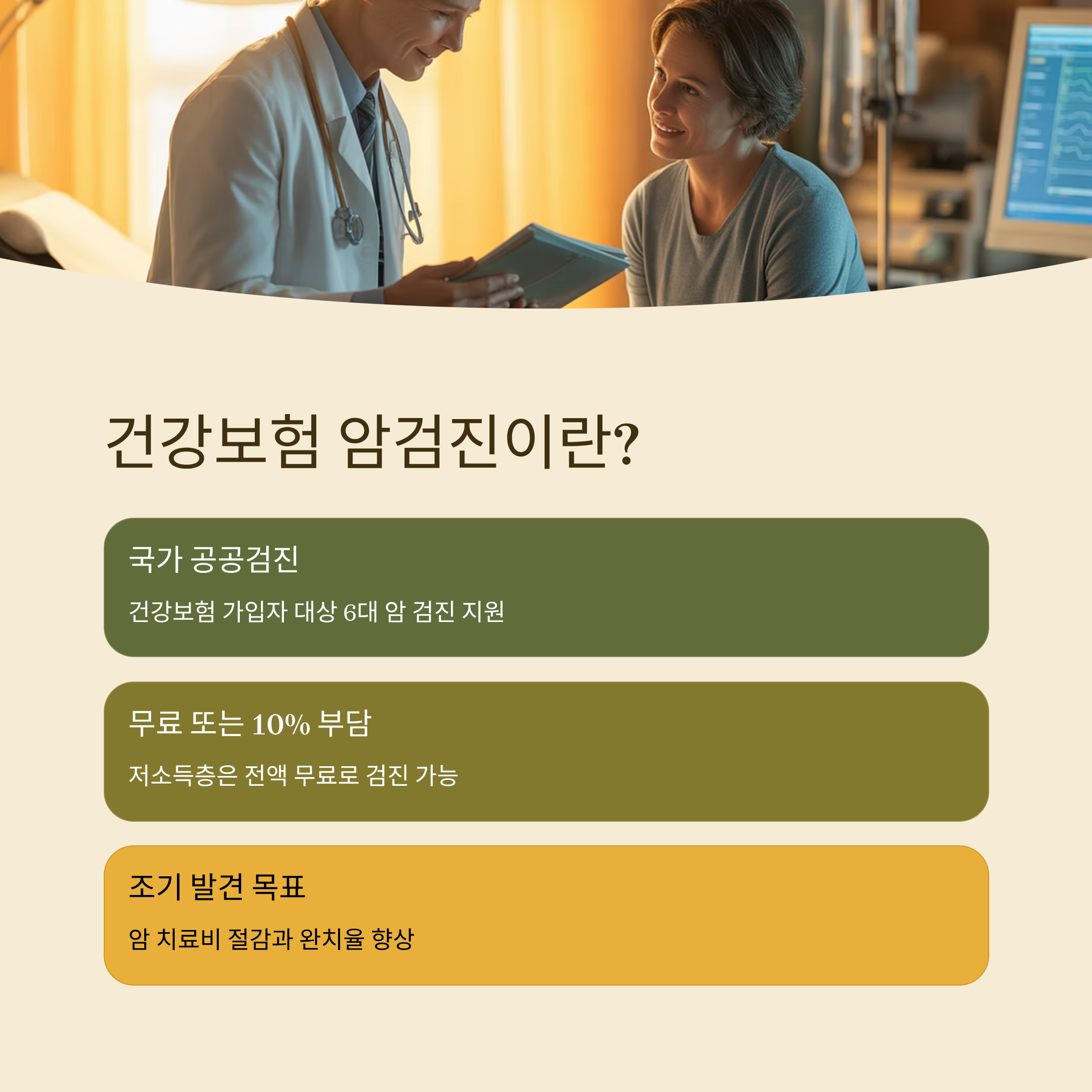 건강보험 암검진은 국가가 국민의 건강을 지키기 위해 시행하는 공공검진 프로그램입니다.