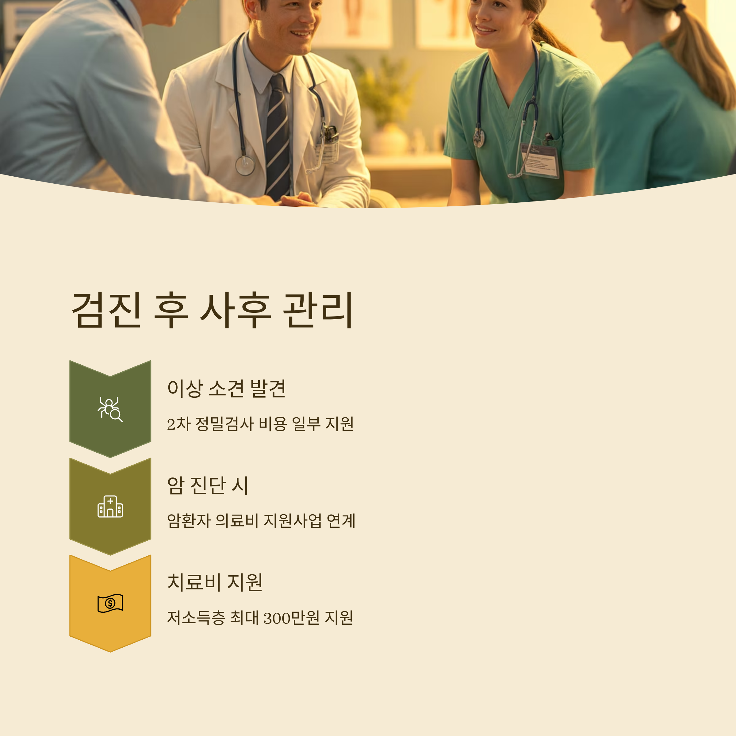 검사 후 이상 소견이 발견되면 2차 정밀검사 비용 일부 지원이 가능합니다.
