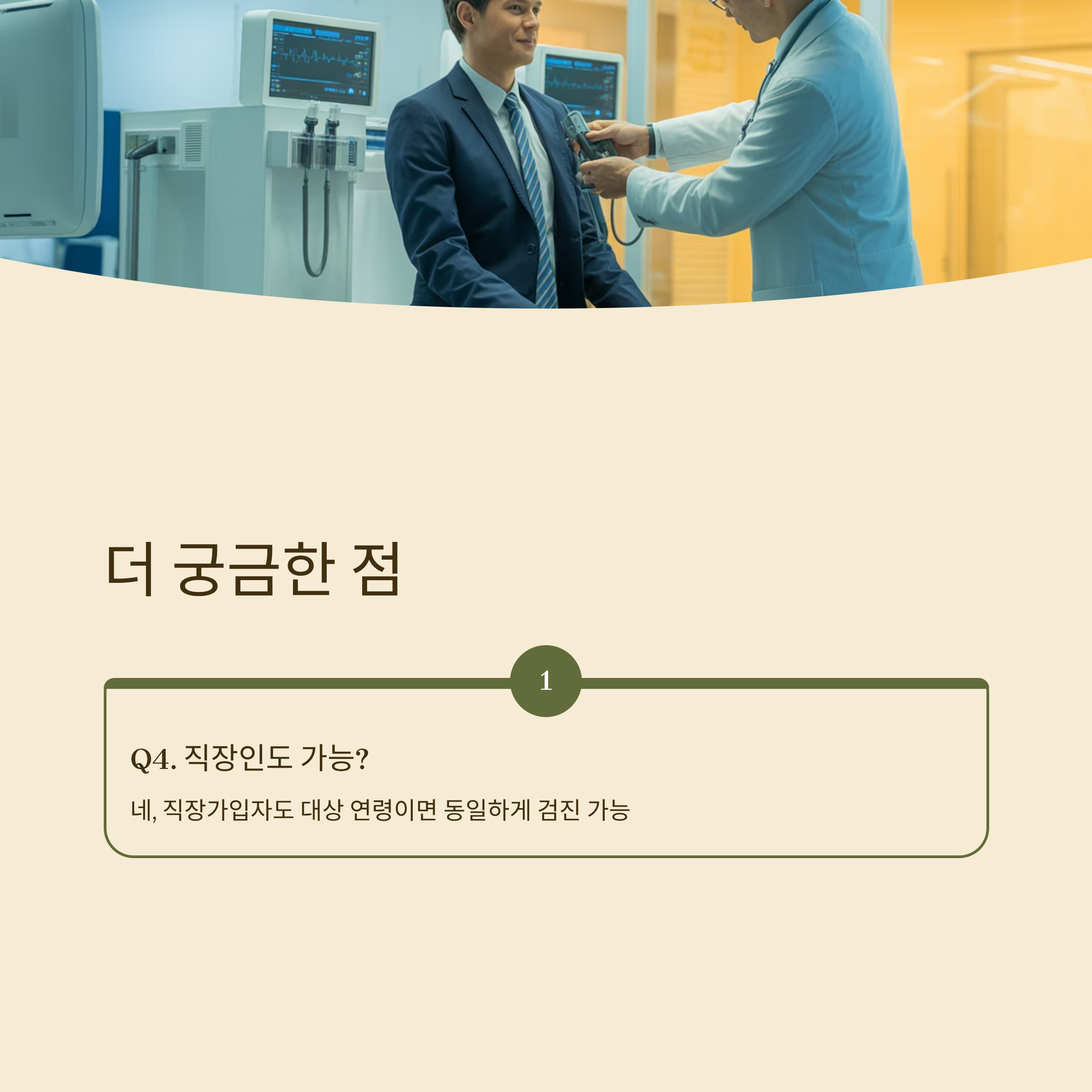 A. 네, 직장가입자도 대상자 연령이면 동일하게 검진이 가능합니다.