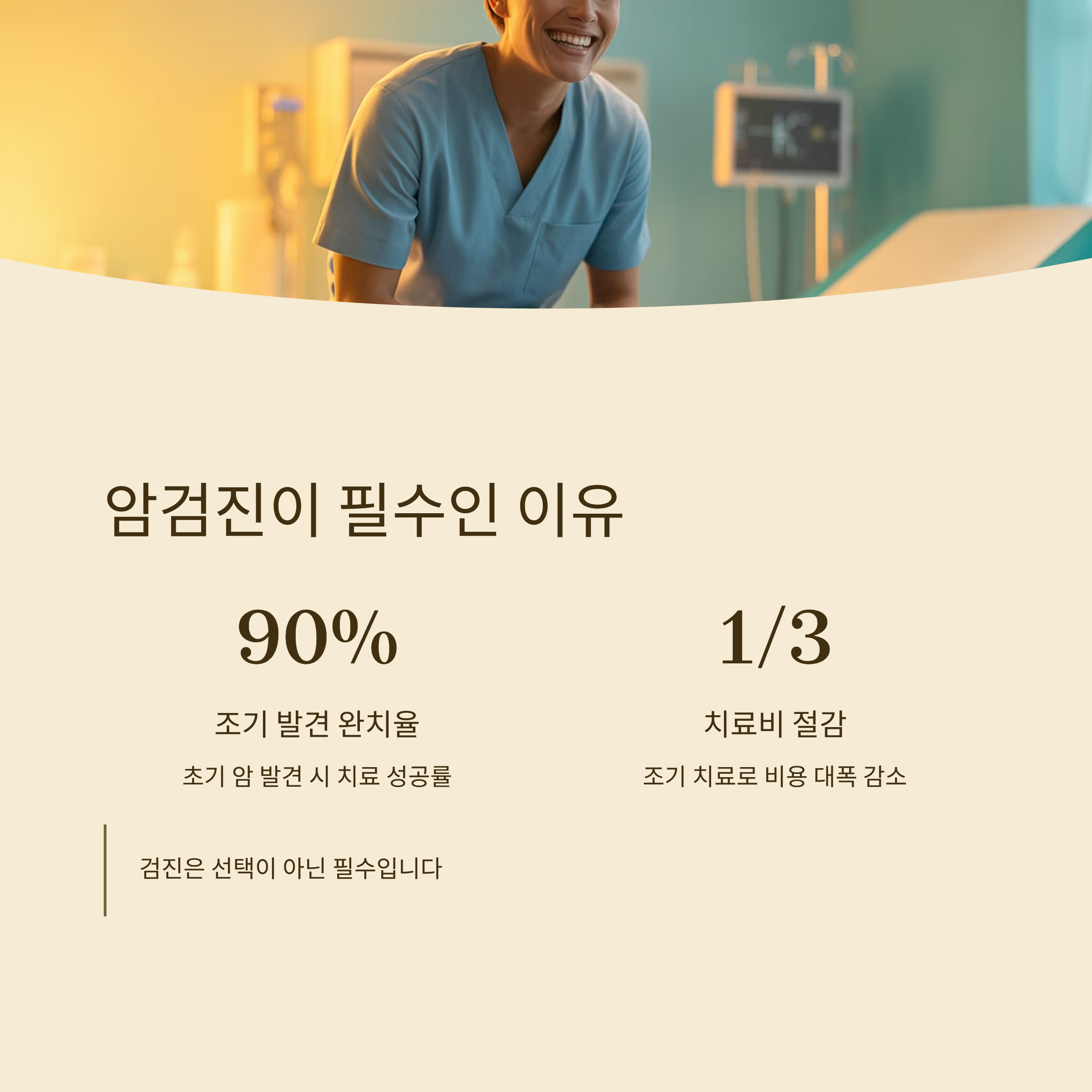 따라서 암검진은 단순 선택이 아니라, 정기적으로 꼭 받아야 하는 필수 검진입니다.