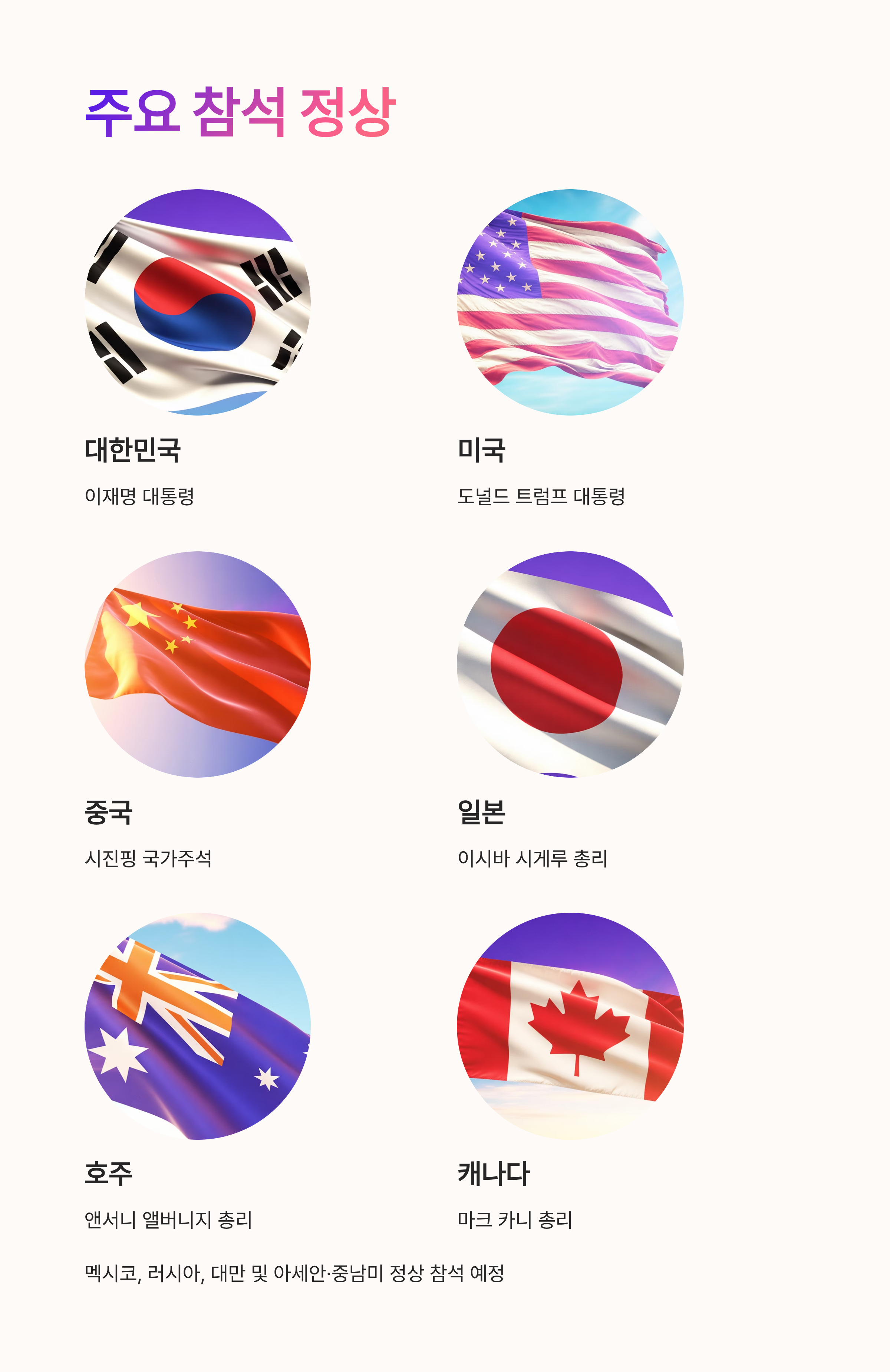 주요 참석 정상 확정 및 예정