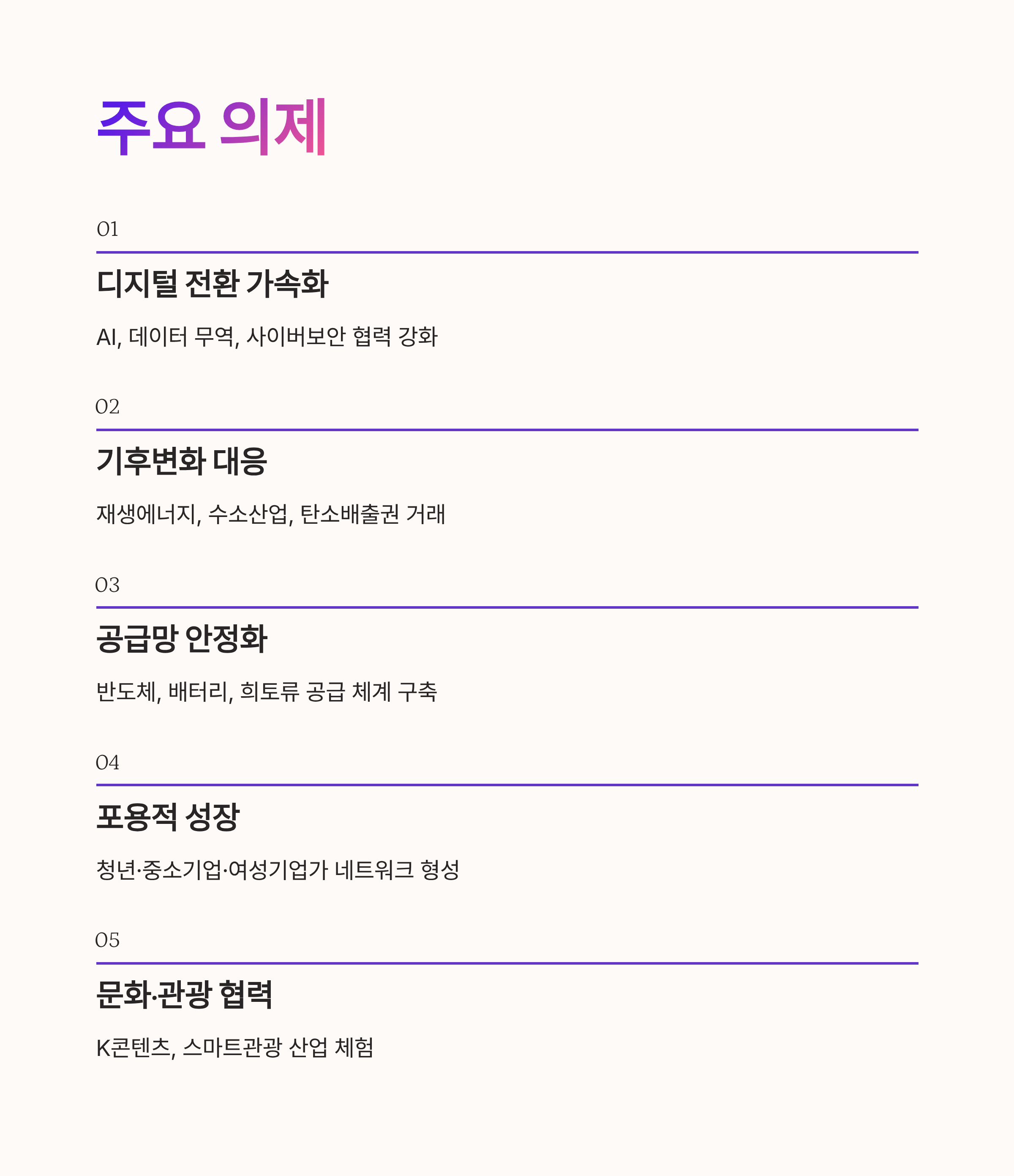 기후변화 대응, 디지털경제 협력, 포용적 성장,
