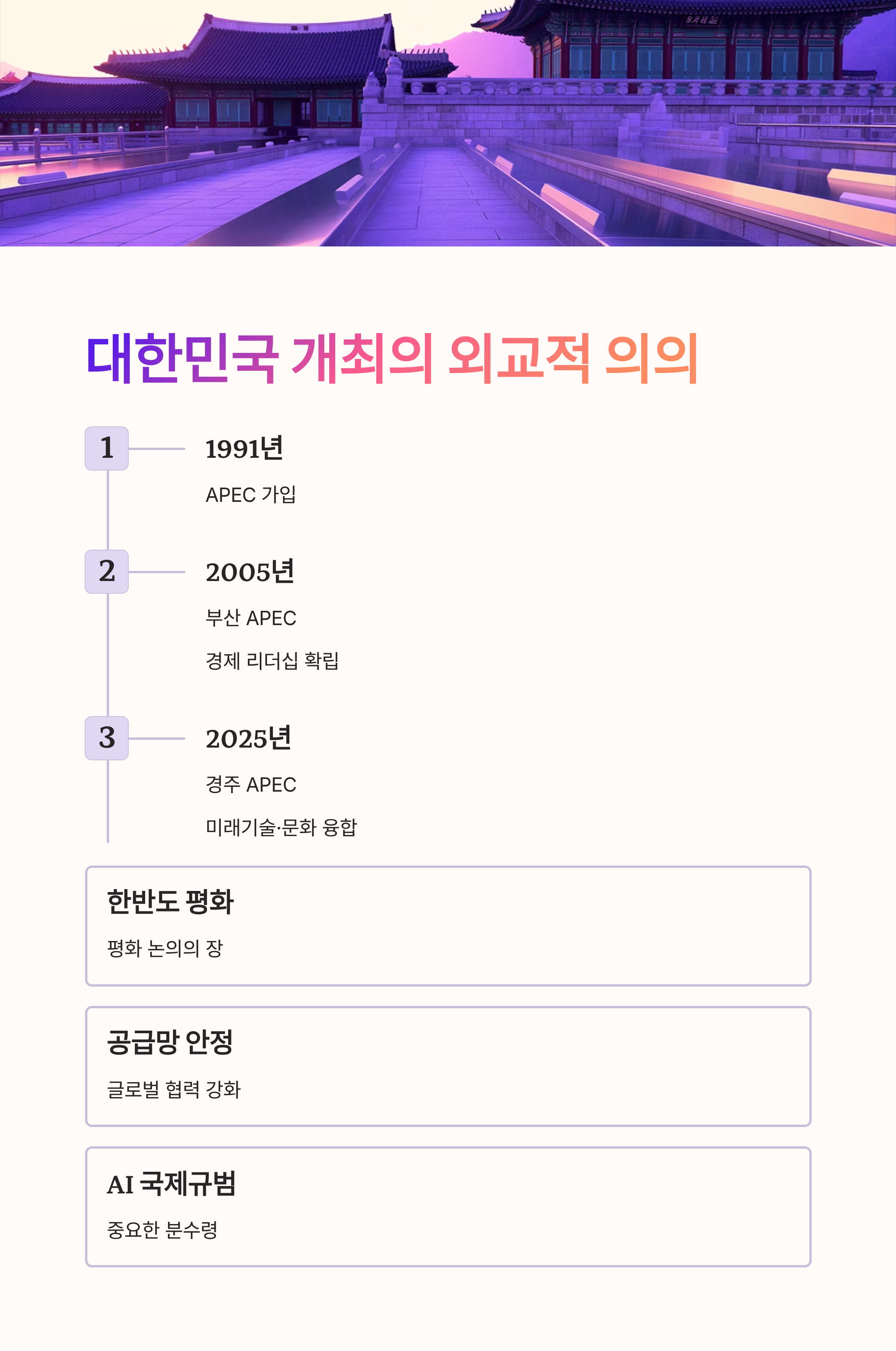 2025년 경주 APEC은 미래기술과 문화가 융합된 대한민국의 새로운 외교 모델로 평가받고 있습니다.