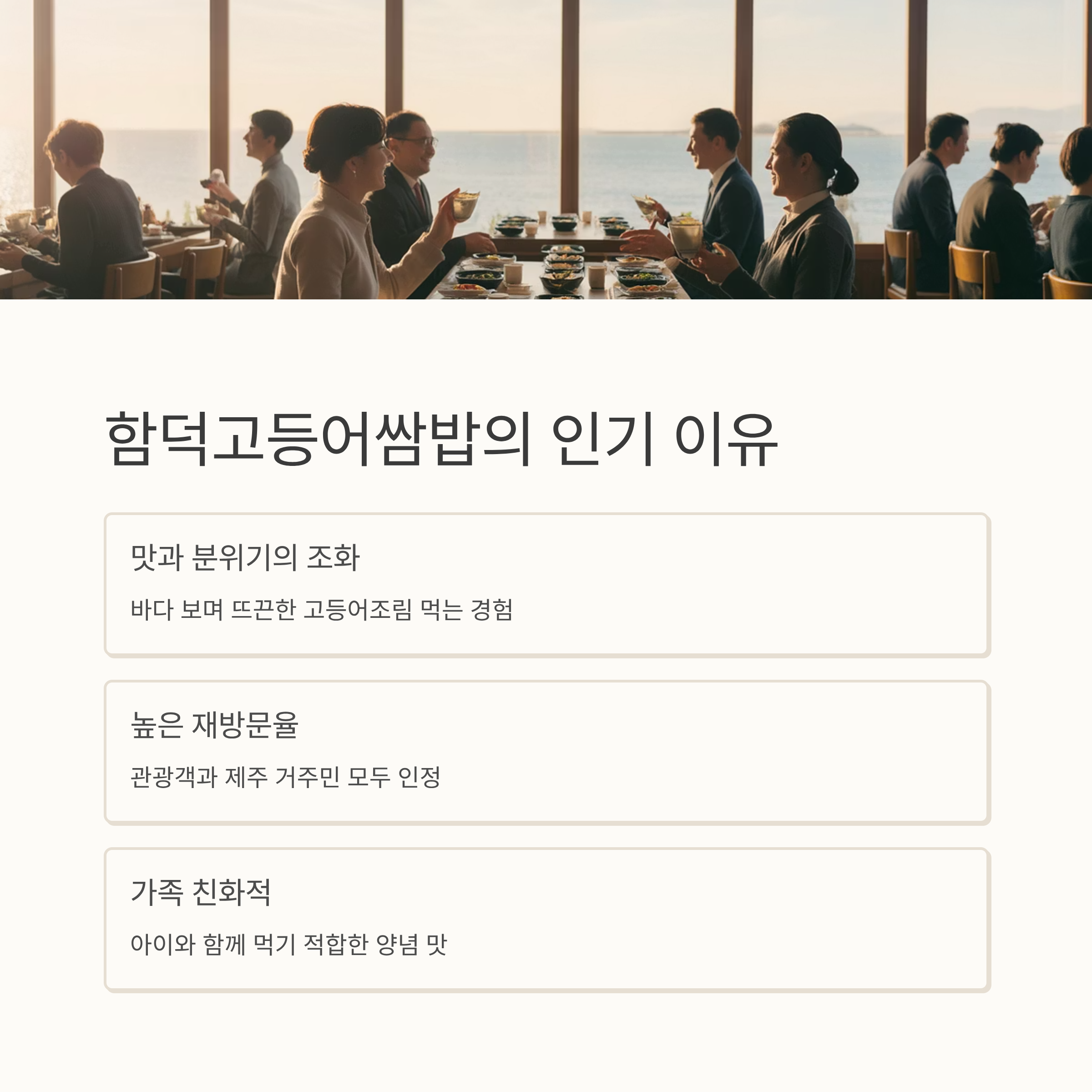 이 식당이 함덕 지역 맛집으로 자리 잡은 이유는 단순히 맛뿐 아니라 식사 분위기와 위치의 조화다.