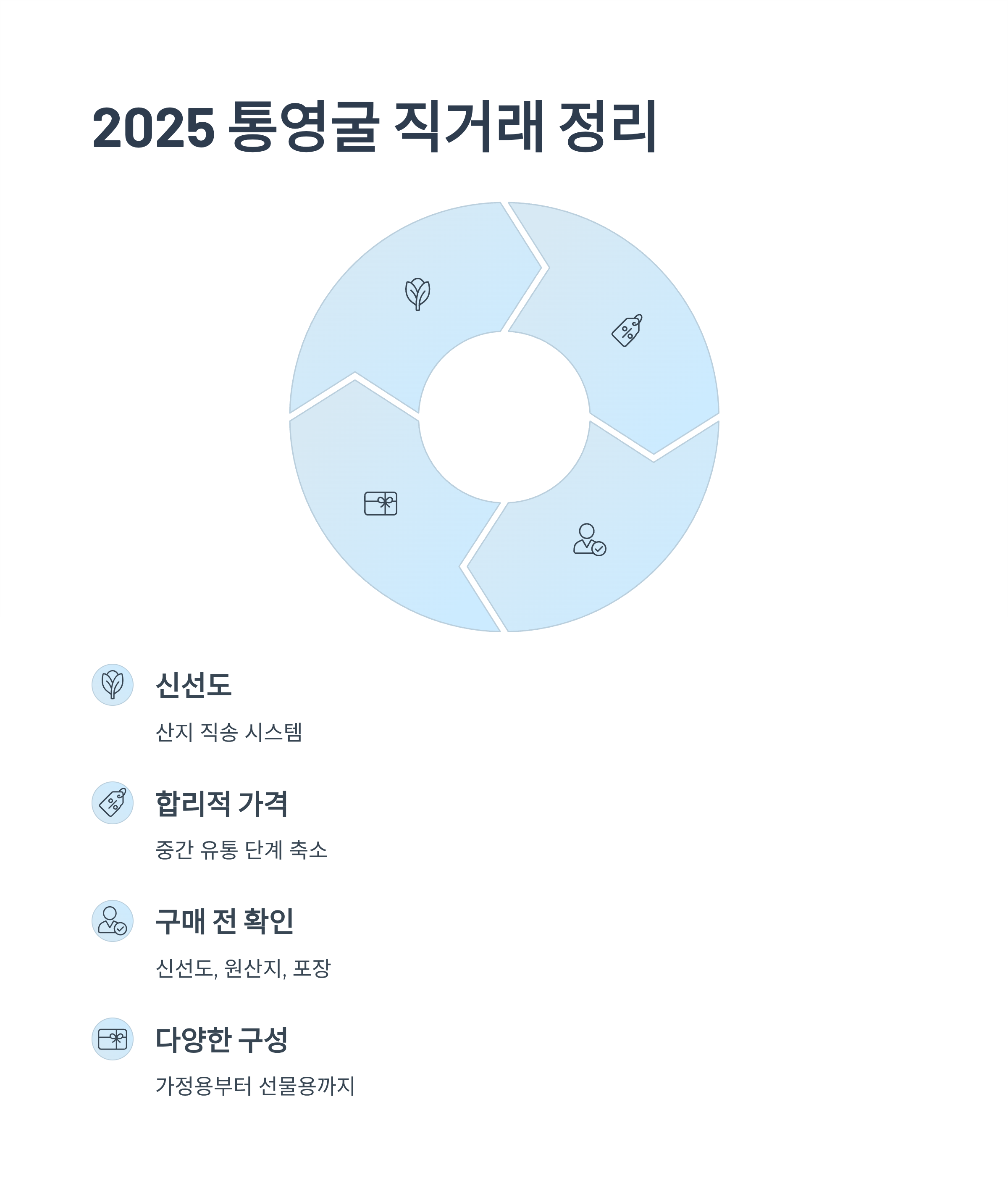 통영굴 직거래의 가장 큰 장점은 중간 유통을 거치지 않아 신선하고 합리적인 가격이라는 점입니다.