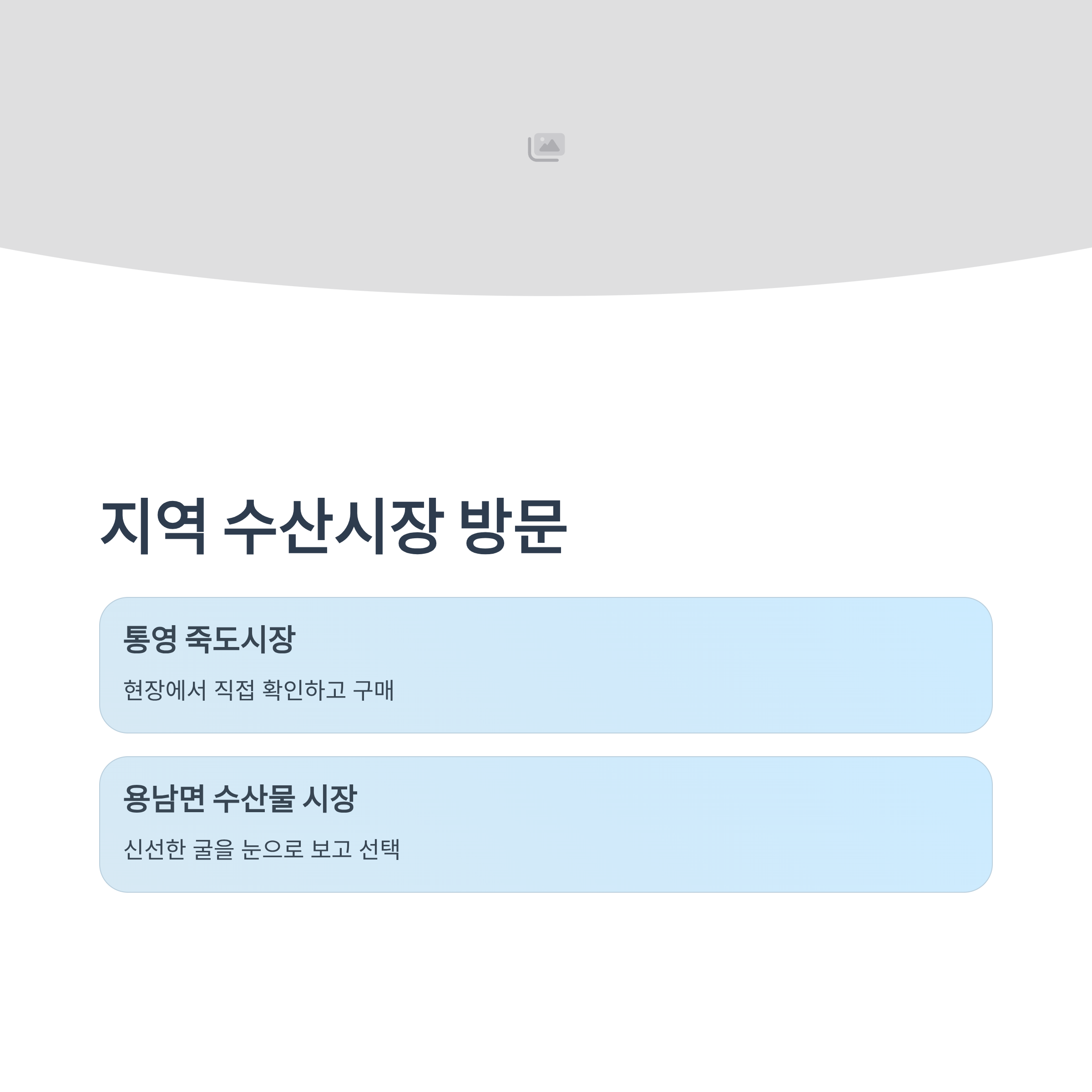 통영 죽도시장, 용남면 수산물 시장 등에서는 현장에서 신선한 굴을 직접 보고 구매할 수 있습니다.