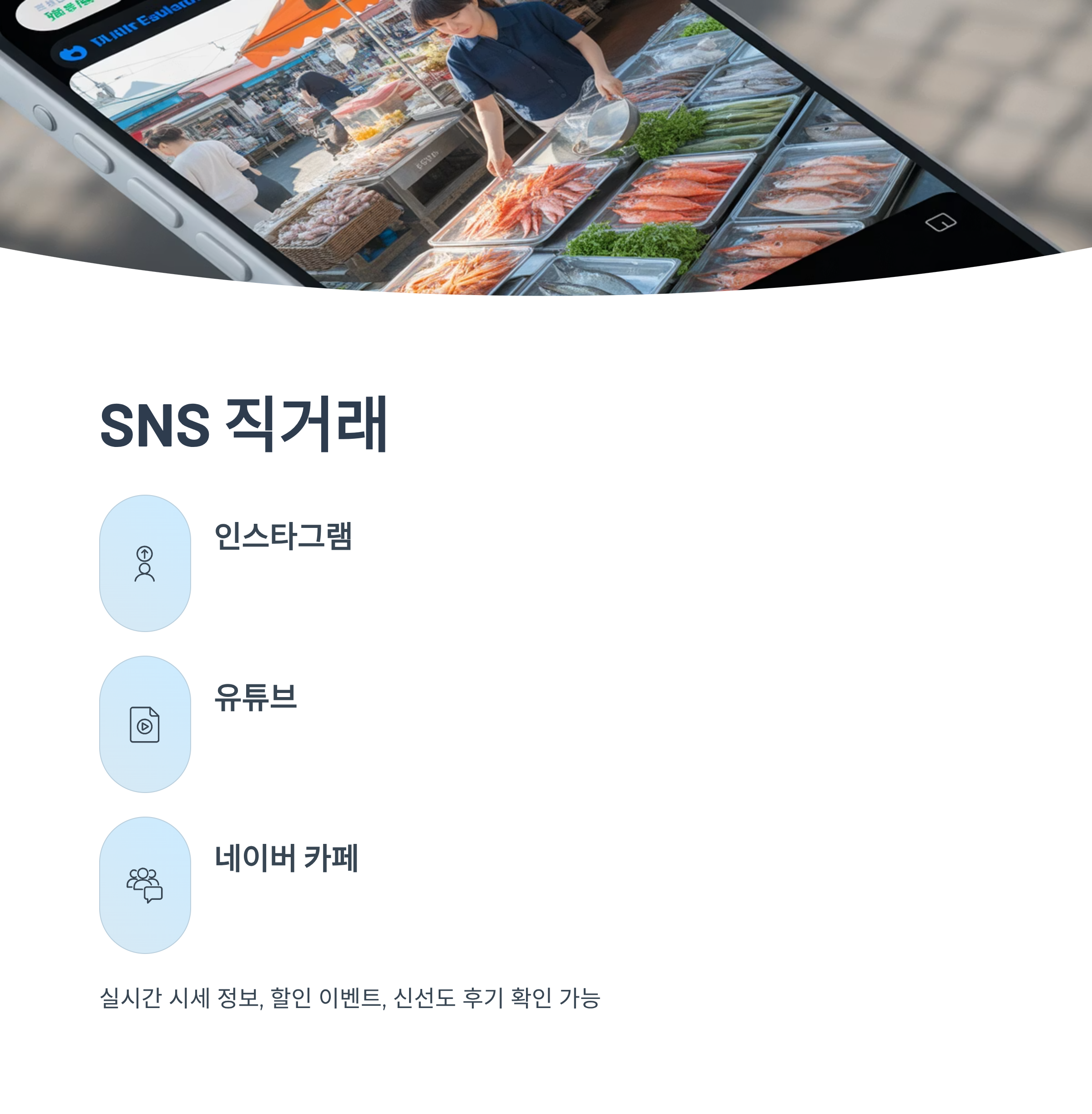 시세 정보, 할인 이벤트, 신선도 후기 등을 실시간으로 확인할 수 있습니다.
