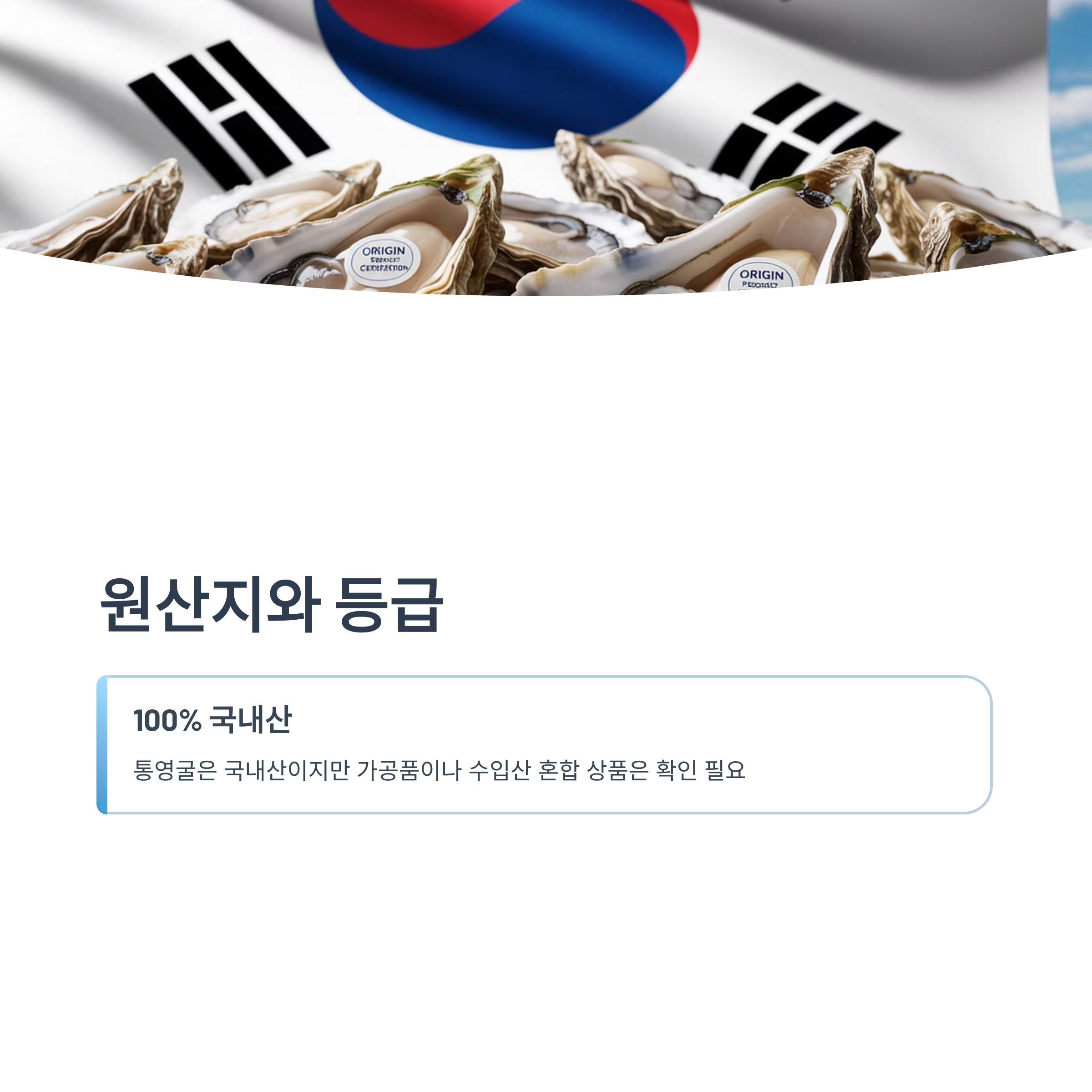 통영굴은 100퍼센트 국내산이지만, 일부 가공품이나 수입산 혼합 상품은 확인이 필요합니다.