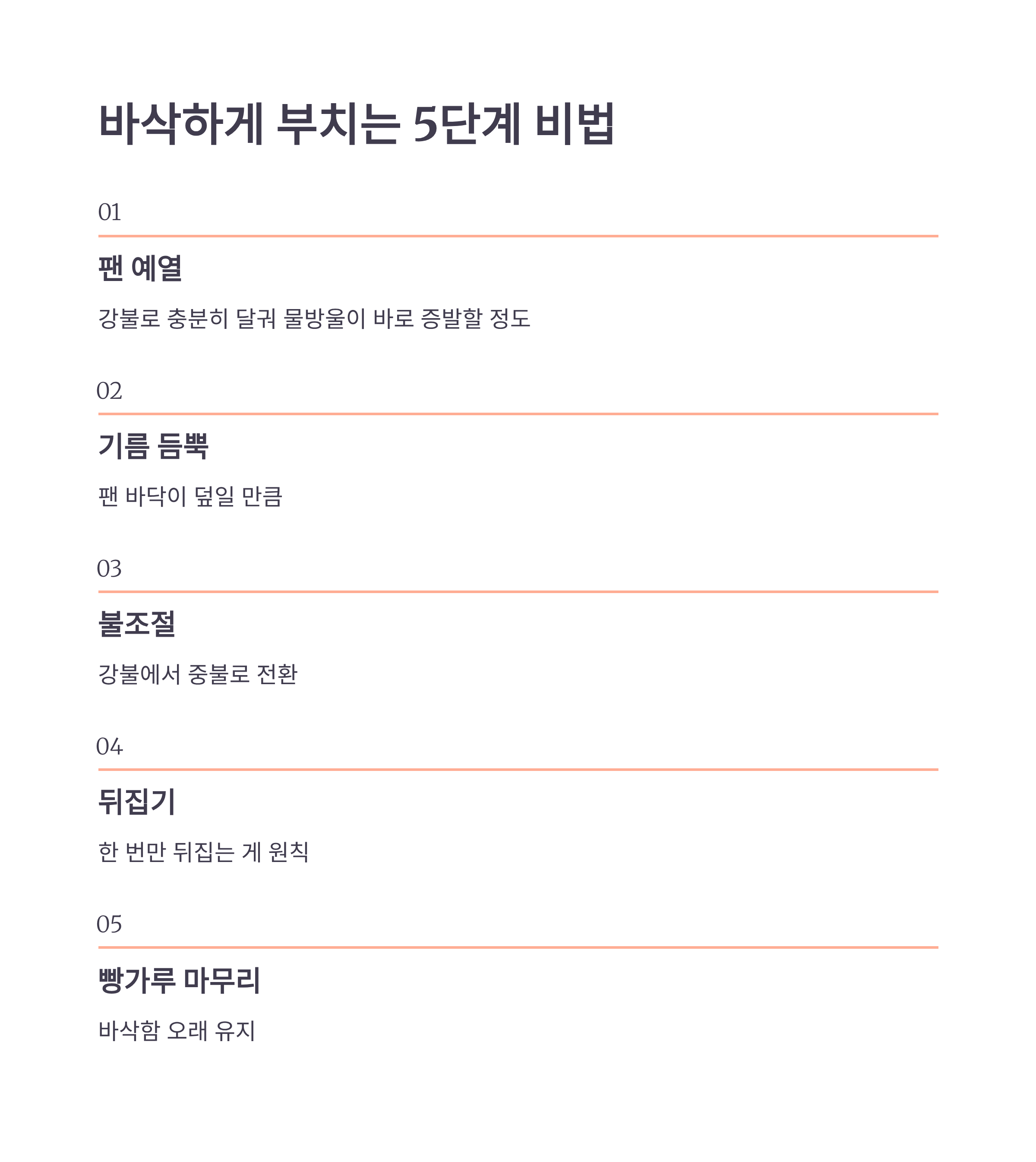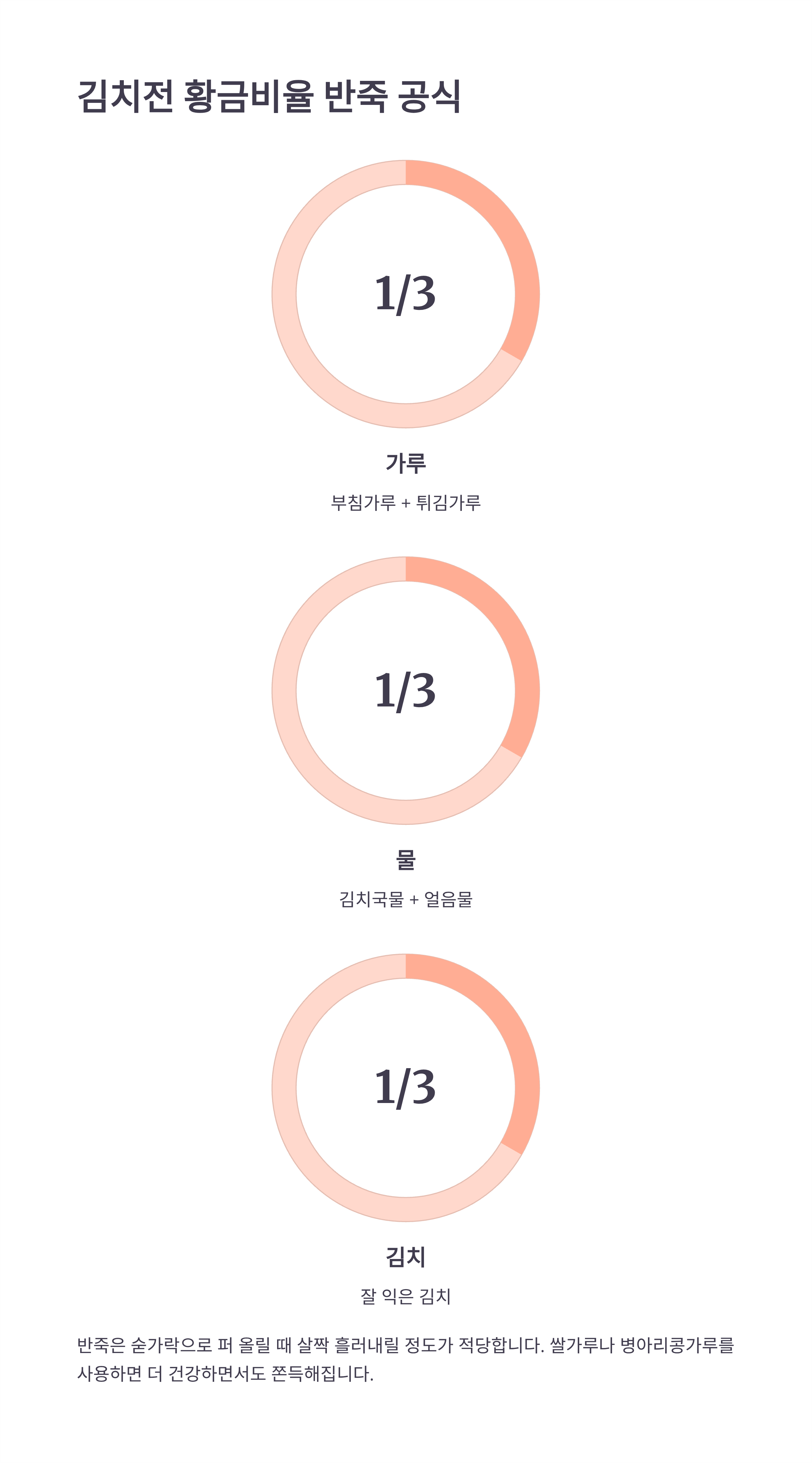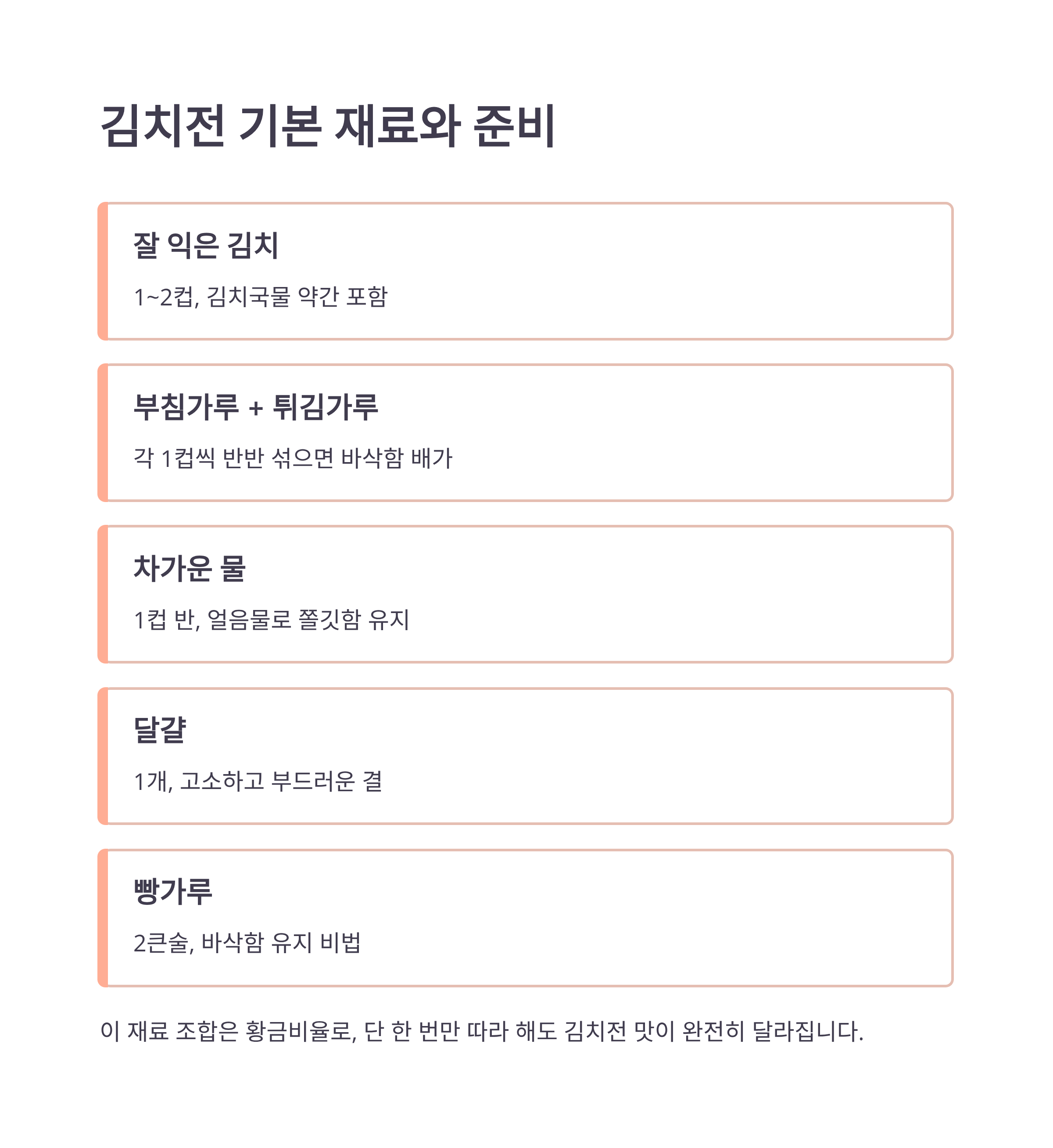 김치전의 핵심은 김치의 숙성도, 반죽의 온도, 그리고 불조절입니다.