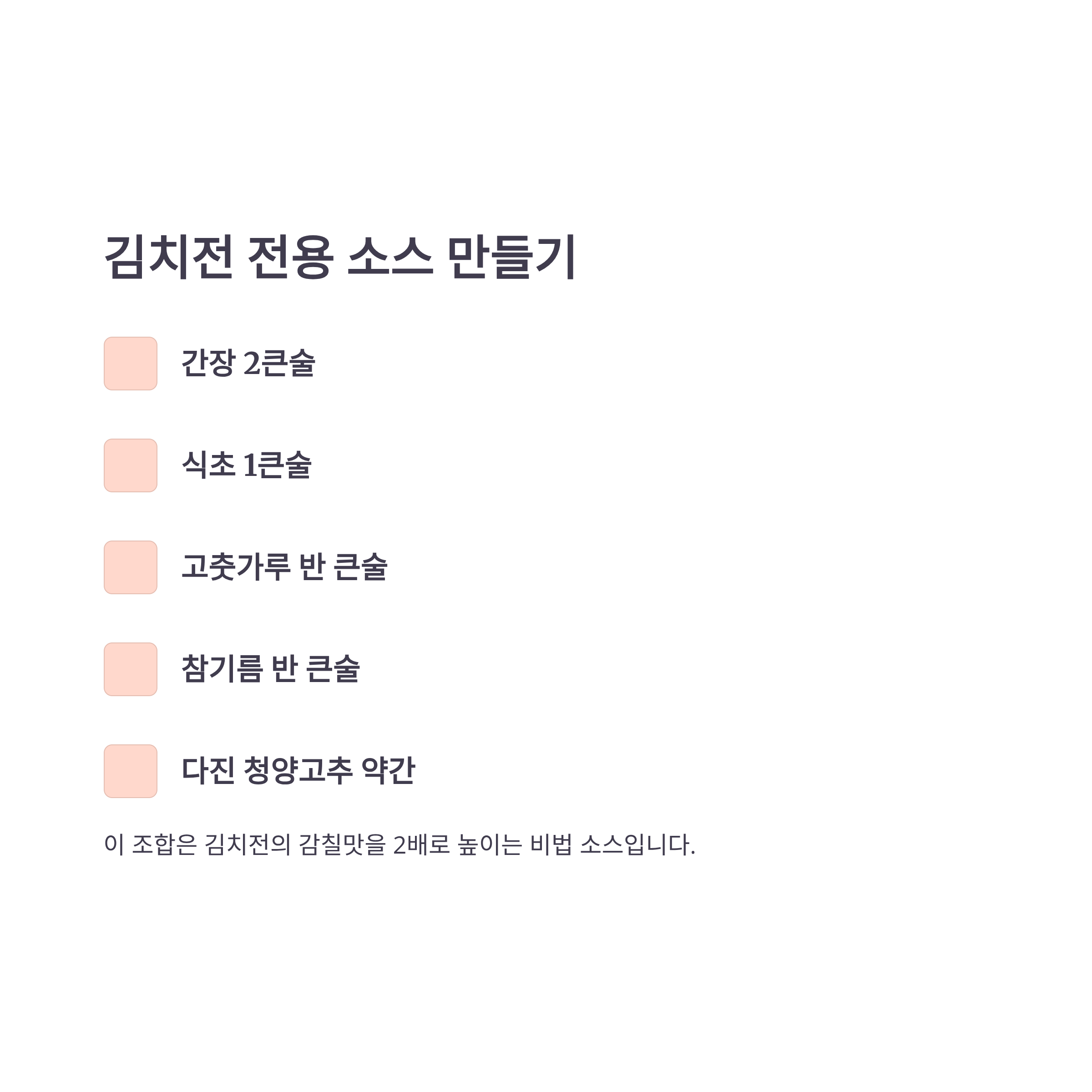 이 조합은 김치전의 감칠맛을 2배로 높이는 비법 소스입니다.