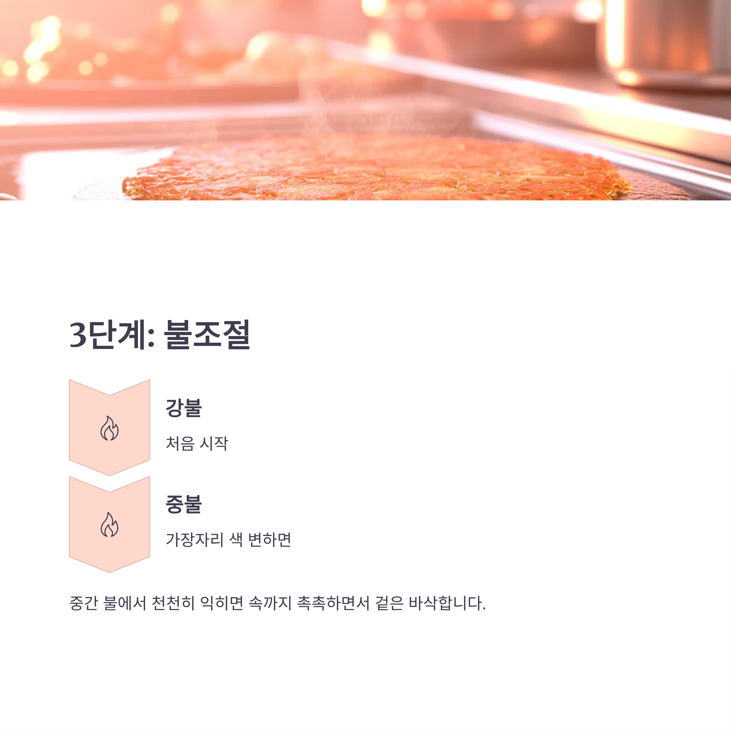 중간 불에서 천천히 익히면 속까지 촉촉하면서 겉은 바삭합니다.