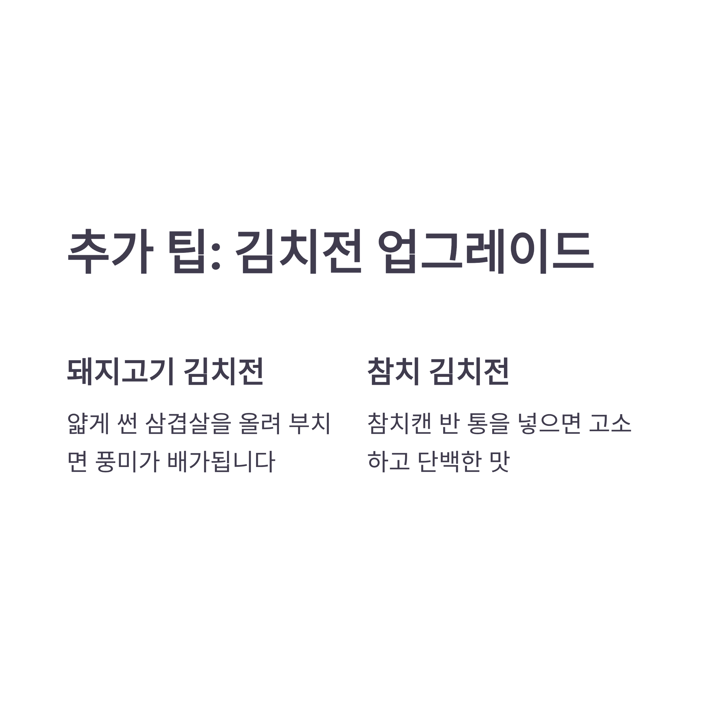 단 한 번만 따라 해도 김치전 맛이 완전히 달라집니다.